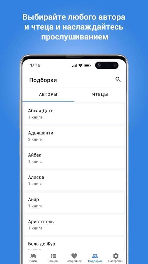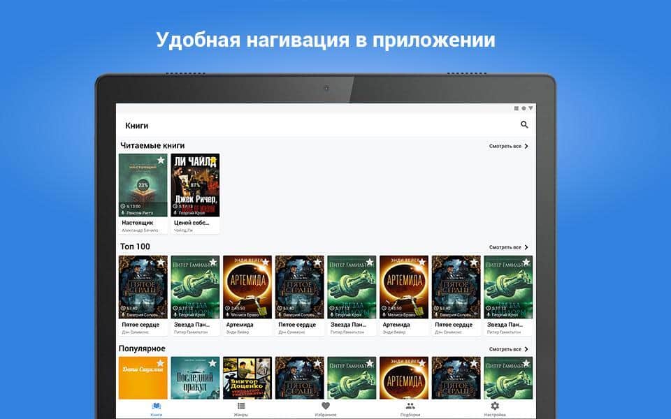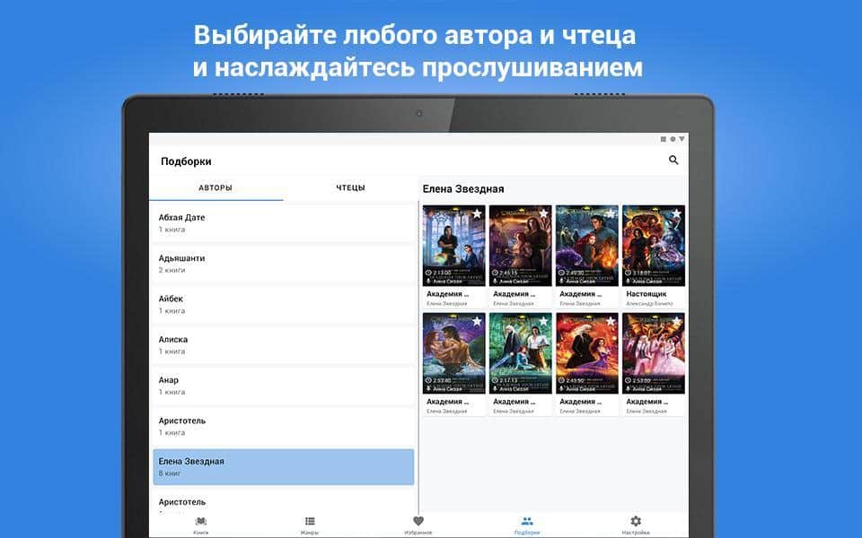 Просматривание каталога аудиокниг, в том числе и прослушанных;