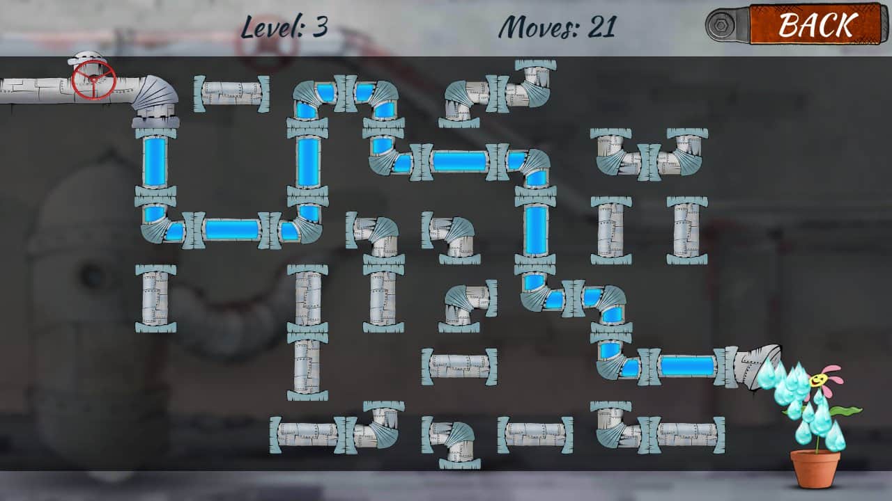 Plumber 2 – увлекательная головоломка для андроид, где вы станете водопроводчиком. Выступайте в роли водопроводчика и соединяйте между собой многочисленные фрагменты труб, чтобы собрать целый трубопровод и полить цветок водой. Работа трубопроводчика очень сложна и прежде чем приступить к работе, вам необходимо точно разработать свою тактику соединения труб ведь количество ходов у вас будет ограничено. Одно прикосновение к трубе считается как один ход, так что тщательней продумывайте каждое свое движение. Проходите один за другим уровни игры и поливайте маленькие цветочки, чтобы они росли и набирались силы.
