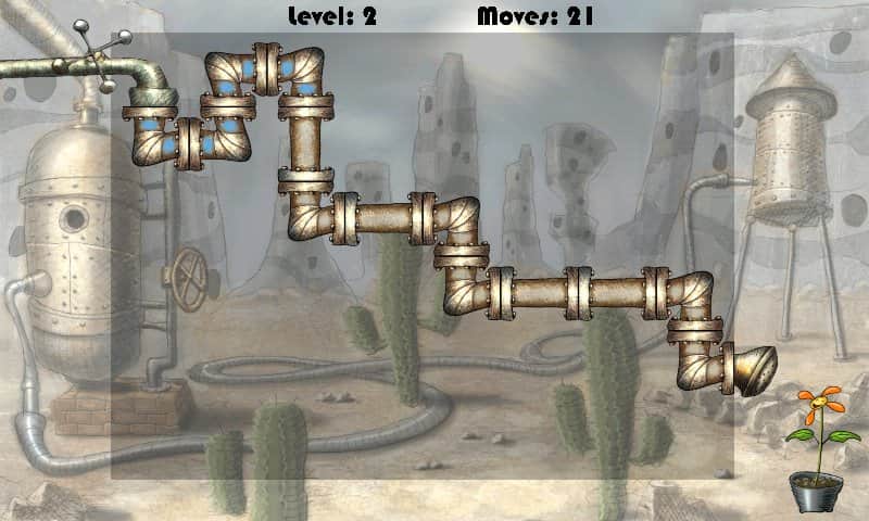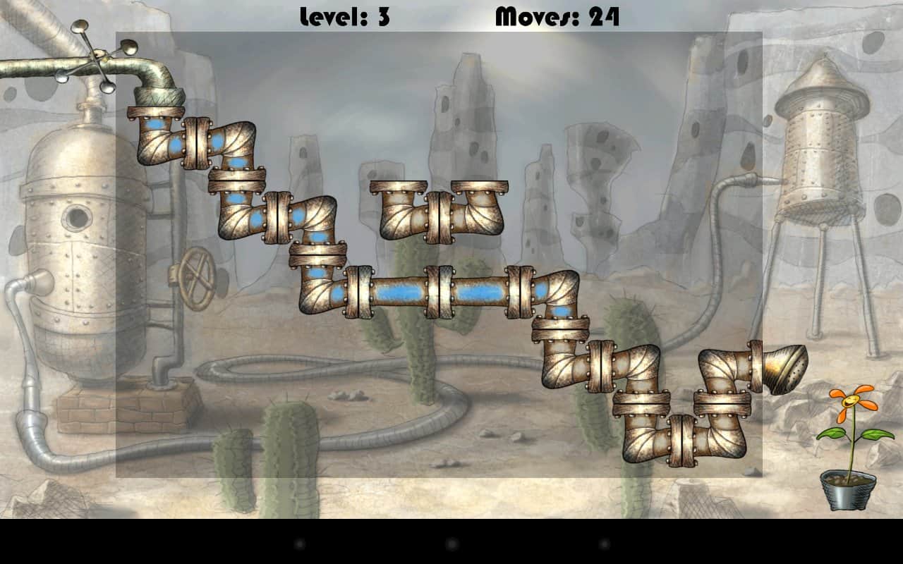 Водопроводчик - одна из самых популярных аркадных головоломок своего времени и не смотря на то что возраст игры уже достаточно приличен, по игровым меркам, тем не менее аркада и по сей день пользуется популярностью и как следствие разработчики продолжают радовать нас все новыми и новыми вариантами игры. Сюжет новой вариации той самой аркады под названием Plumber довольно прост, в засушливой пустыне пророс маленький, но чрезвычайно красивый цветок, но воды не хватает даже для юного ростка, единственный способ помочь растению это провести влагу от ближайшего источника, однако проблема в том что родник далековата. Но для вас, опытного водопроводчика это не проблема и вы с энтузиазмом беретесь за дело. В остальном Plumber для Андроид это все тот же хорошо знакомы водопроводчик.