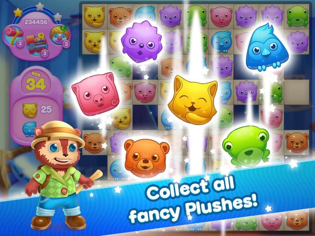 Plush Crush – яркая игра из жанра три в ряд на андроид, где вы попадете в удивительный мир игрушек. В этой игре вашей задачей будет складывать одинаковые игрушки в ряды, и наслаждаться красочными взрывами. Сортируйте между собой игрушки и старайтесь собрать как можно длиннее цепочки из них. Переставляйте местами милые мордочки зверей и получайте в качестве награды отличные бонусы и усиления, которые помогут вам быстрее пройти уровень и заработать максимальное количество очков. Играйте в эту игру и добивайтесь рекордных результатов, а также помогите разработчикам протестировать игру и выявить все неисправности.