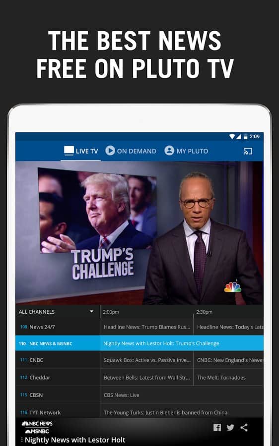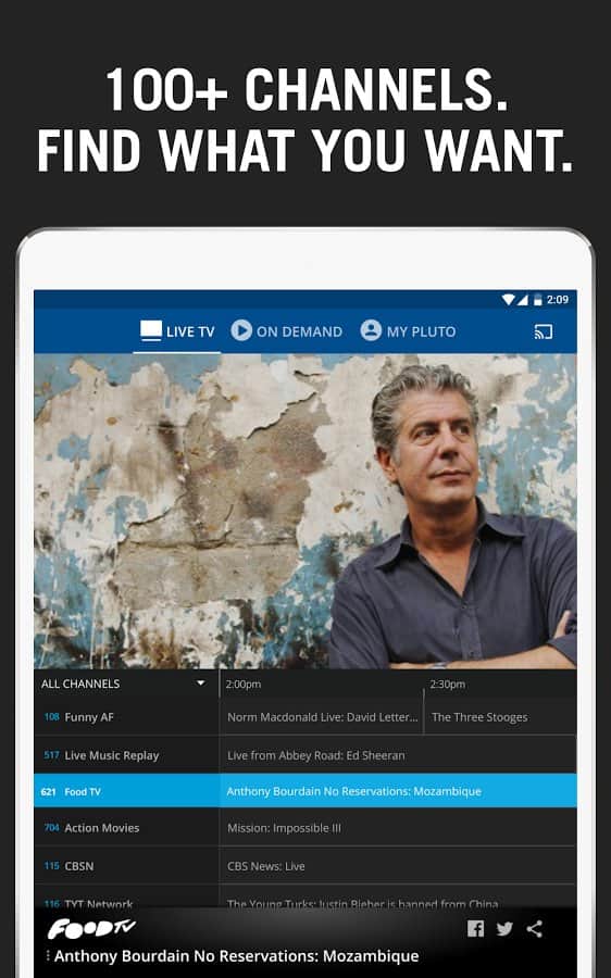 Pluto TV: TV for the Internet - Любите смотреть телевизор в любом месте и в любое время? Это приложение поможет вам носить телевизор с собой, все что вам нужно сделать, так это выбрать какой канал хотите посмотреть. Управление приложением происходит очень просто, и всего в пару тапов, вы уже будете смотреть тв. Самое занятное в этом приложении то, что каналы здесь собраны со всего мира, и если вы хотите посмотреть что-то на других языках, это не составит труда.