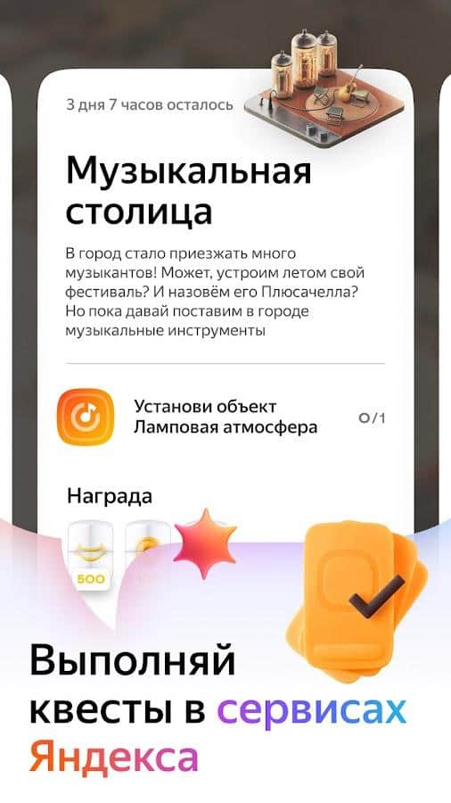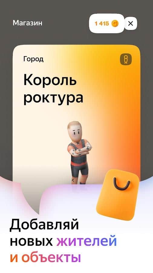 Плюс Сити — симулятор города - В собственном городе вы сможете делать все что вздумается, и конечно же получать за это баллы, которые можно использовать в сервисах Яндекса! Займитесь всеми необходимыми делами внутри Плюс Сити: стройте новые здания, заселяйте приехавших жителей (среди них могут быть популярные персонажи из фильмов или сериалов), украшайте территорию, находите спрятанные предметы, выполняйте ежедневные задания и играйте в мини-игры, например «Три в ряд». Музыка, Кинопоиск, Go, Еда, Маркет — все это будет с разнообразными бонусами!