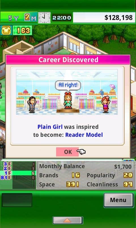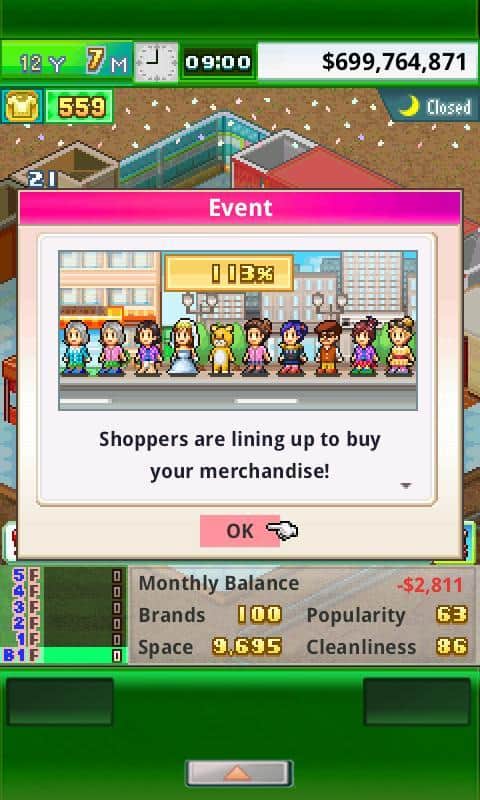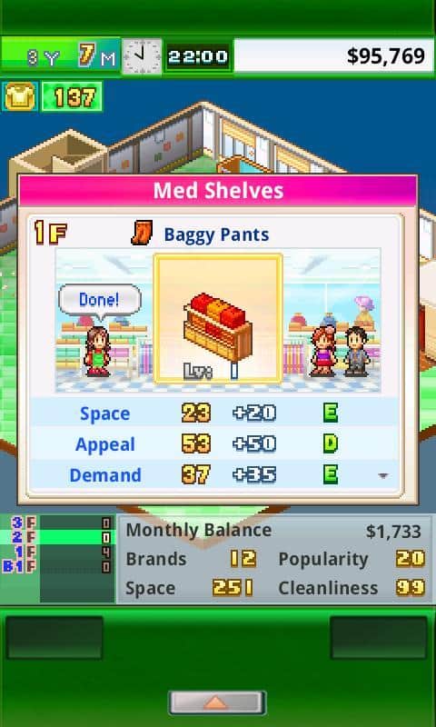 Pocket Clothier - продолжение серии экономических стратегий от студии Kairosoft. На этот раз вам предстоит взять под свое начало магазин одежды. Как и во всех проектах входящих в рамки серии разработчики реализовали проработанную до мелочей экономическую модель и модель поведения.Вам же необходимо сделать так чтобы ваш бутик не только успешно существовал, но и развивался, а для это стоит привлечь максимальное количество посетителей. Для этих целей предусмотрены целые наборы возможностей, заказывайте образцы одежды от самых престижных кутюрье, оформляйте и обустраивайте магазин, расширяйте площади, проводите акции и сезоны скидок, создавайте одежду сами, нанимайте персонал с уникальными навыками. Помимо этого разработчики дали игрокам возможность придумывать и собственные способы.