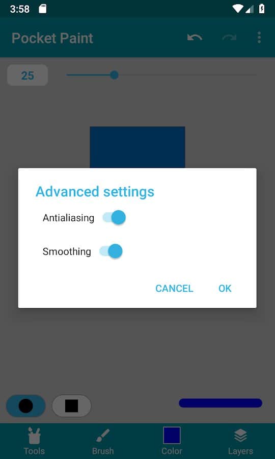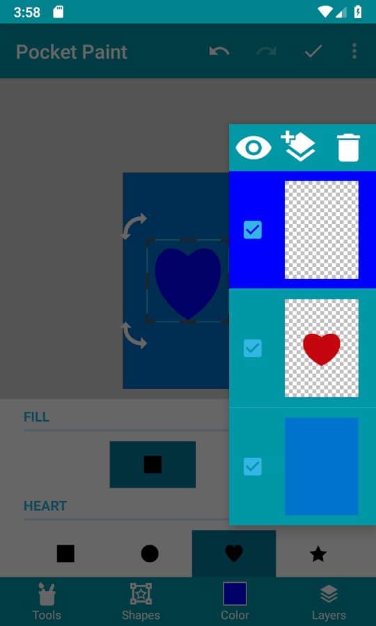 Обычно не пользуюсь отдельным Pocket Paint, но пользуюсь встроенным в Pocket Code. Отдельный Pocket Paint от встроенного почти ничем не отличаются. В рисовалке есть достаточное количество функций, чтобы нарисовать простой спрайт. Тут также можно работать со слоями, хоть они и не очень хорошо сделаны. Недостатками приложения являются баги и недоработки. В частности приложение не сильно оптимизировано под слабые устройства, но все еще может работать.