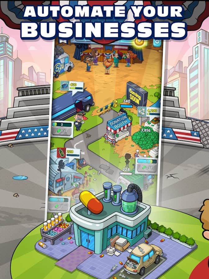 Pocket Politics 2 – это аркадный симулятор президента с элементами стратегии.В детстве, наверное, каждый мечтал стать президентом или хотя бы быть его человеком из близкого круга знакомых и друзей. В Pocket Politics 2 вам предоставляется такая возможность. Выберите кандидата на пост главы державы и проведите рекламную кампанию, дабы занять президентское кресло. Расскажите гражданам, что вы сможете сделать за время правления, пообещайте огромные перспективы. Вы вольны делать все для продвижения вашего кандидата: увеличивайте свою прибыль за счет пожертвований или инвестируйте в бизнес. Не забывайте, что у вас есть конкуренты и они всегда на чеку. Игра безумно интересна и проработана до деталей. Саркастический юмор будет веселить вас во время всего прохождения, если конечно вы знаете английский язык.