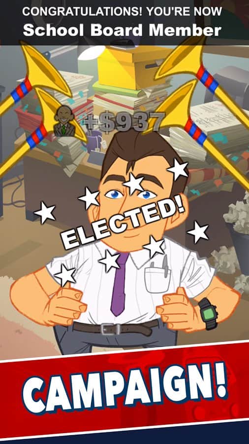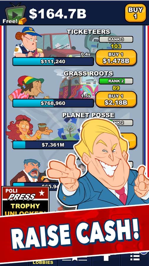 Pocket Politics - Разнообразьте свой день при помощи политического кликера, в котором вам предстоит попробовать себя в роли президента. Задача как всегда проста и банальна, и можно сказать что это обыкновенная убивалка времени. Все что вам нужно это заработать денег и стать президентом, и для этого придется тапать по экрану. Однако одними тапами далеко не уедешь, так же вам нужно будет улучшать различные аспекты жизни людей, что бы получать дополнительную поддержку, и ещё больше прибыли.