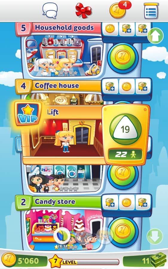 Pocket Tower – увлекательная игра на андроид, где вам предстоит построить огромный небоскреб. Занимайтесь строительством и получайте прибыль, размещая на каждом этаже здания офисы, рестораны, гостиницы и небольшие предприятия. Развивайте свой прибыльный бизнес, добавляя каждый раз новый этаж, а также принимайте на работу опытных и ценных сотрудников, устраивая каждого жителя этого города. Привлекайте новых клиентов, добавляя различные улучшения своему зданию, например постройка лифта. Игра порадует вас многочисленными персонажами и жителями города, разнообразными этажами и простым управлением. Играйте с друзьями и добивайтесь наилучших результатов.