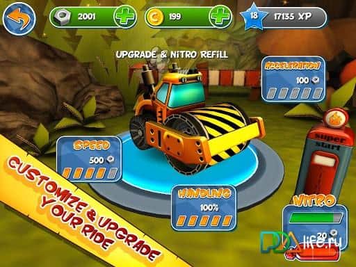 Pocket Trucks - Невероятные андроид гонки в мультяшном 3D миром с невероятными трассами! Найдите самый короткий путь, уложитесь во времени и выиграйте гонки против других гонщиков. На пути вас ждут опасности – взрывчатка, шипы и катки, норовящие вас задавить.