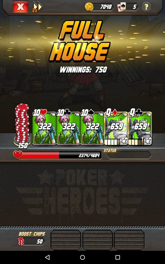 Poker Heroes – карточная игра благодаря которой вы окажитесь в далеком будущем где вам предстоит собрать команду героев и сразится с врагами. Соберите свою неповторимую коллекцию карт и бросьте вызов, самым опытным игрокам участвуя в эпических сражениях, побеждая врагов и захватывая их в плен. Применяйте все способности своих героев, составляя из них выигрышные комбинации и добиваясь лучшего результата. Обучайте и улучшайте данные своих бойцов, а также обучайте их захватывать в плен врагов и переманивать их на свою сторону. После каждого удачного боя, собирайте добычу и экипировку побежденных героев. Создавайте альянсы со своими друзьями в сложных ситуациях.