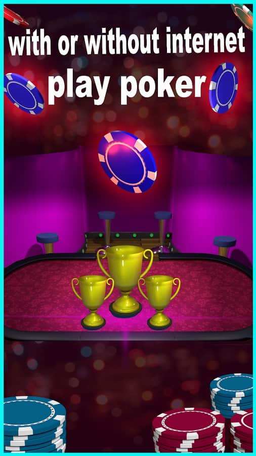 Poker Offline - это вполне себе обычный покер в который играют миллионы, однако отличительной чертой именно данной игры есть то что в неё можно играть с ИИ при этом не используя интернет. Если же игра с ИИ вам надоедает вы всегда можете запустить игру онлайн и поиграть вместе с друзьями или же случайными игроками. К тому же если вы потратите все деньги вы сможете купить ещё, или же просто получить бонус дня и потом попытать свое счастье на рулетке.