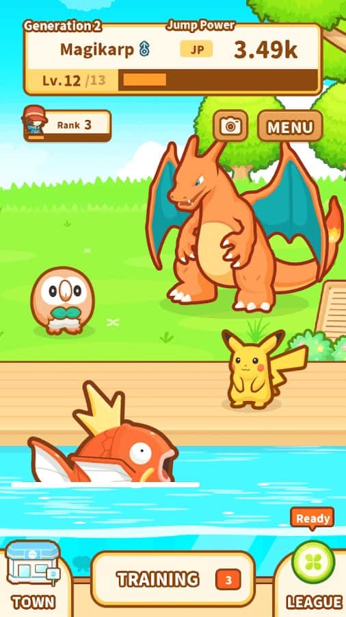 Pokémon: Magikarp Jump – увлекательная игра на андроид, где вы будете собирать покемонов Magikarp. В эту игру вы сможете играть в любое свободное время и весело проводить его, ловя в пруду покемонов-карпов и прокачивая их тем самым стараясь создать самого сильного покемона. Игра порадует вас простыми элементами управления где вы с легкостью сможете поймать своего покемона и кормить его для того чтобы увеличить его силу. Откройте для себя все виды Magikarp, собирая свою коллекцию, и показывайте их своим друзьям. Сражайтесь на арене с другими покемонами Magikarp и показывайте все свои умения и возможности питомца.