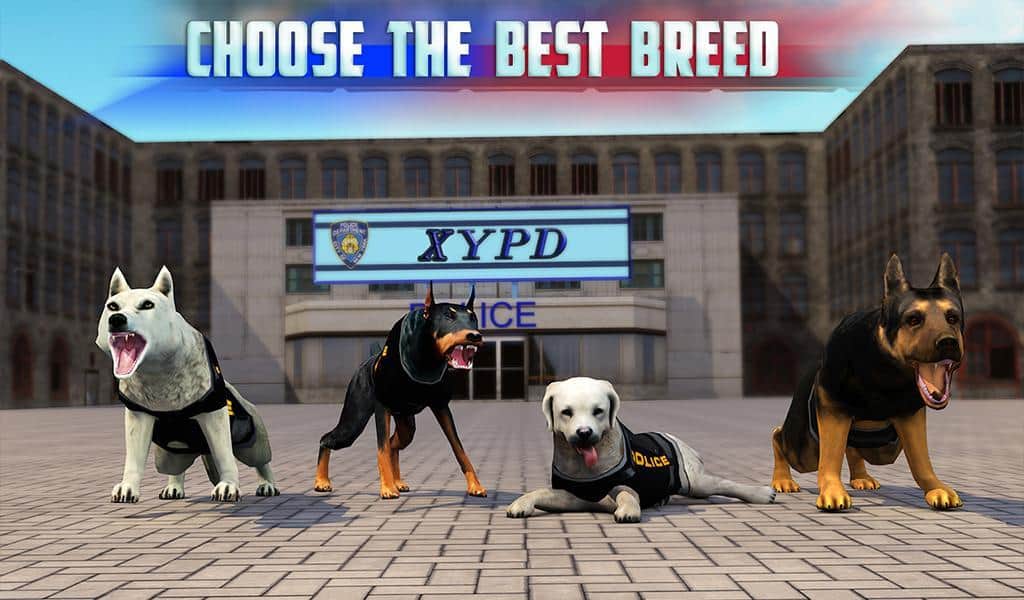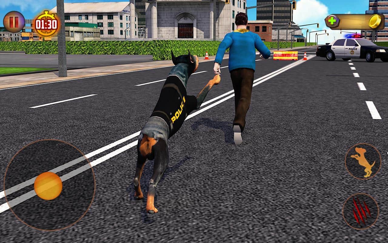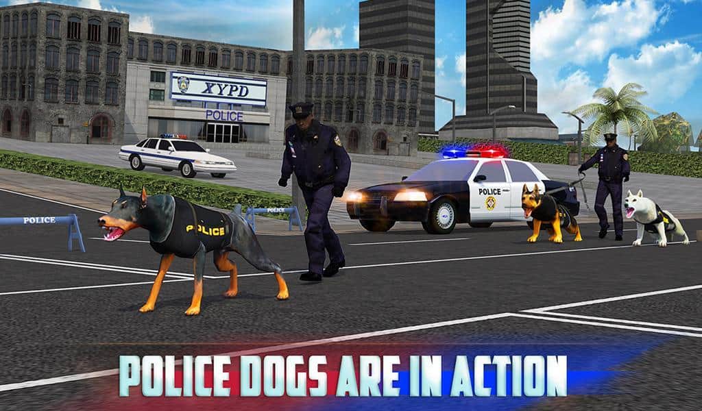 Police Dog Simulator 3D – симулятор полицейской собаки на андроид, где вам предстоит очистить город от преступников и террористов. Выбирайте себе понравившуюся породу собак и начинайте патрулировать улицы города и другие социальные объекты. Выполняйте опасные миссии и положитесь на отличный нюх собаки, которая сможет отыскать спрятанные бомбы, оружие и вычислить преступника. Нападайте на бандитов и террористов и удерживайте их до приезда полицейской машины. Исследуйте улицы и аэропорт, а также постоянно тренируйте своего любимца, добавляя ему ловкости, силы и дополнительных умений.
