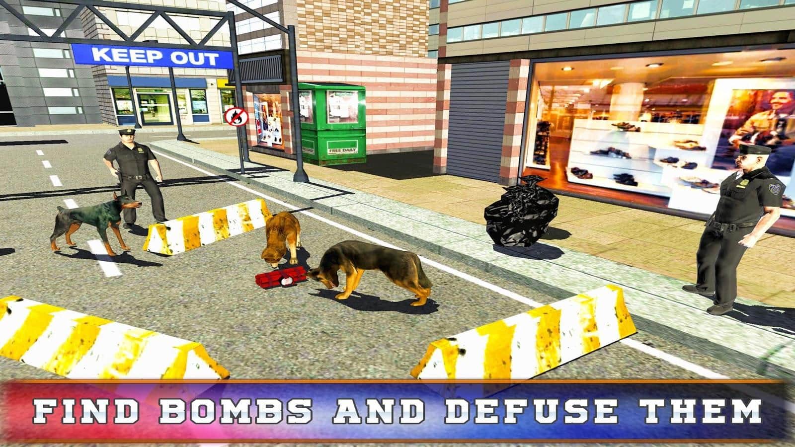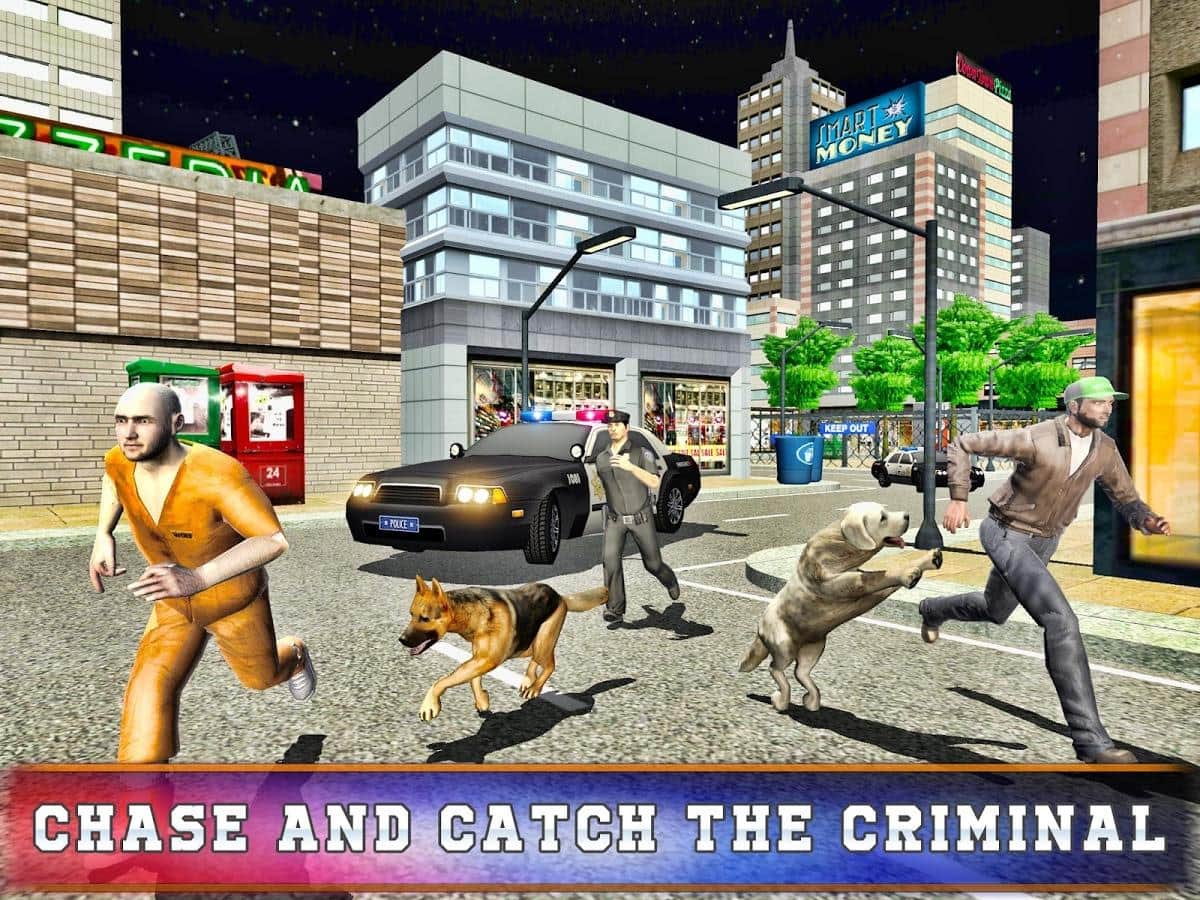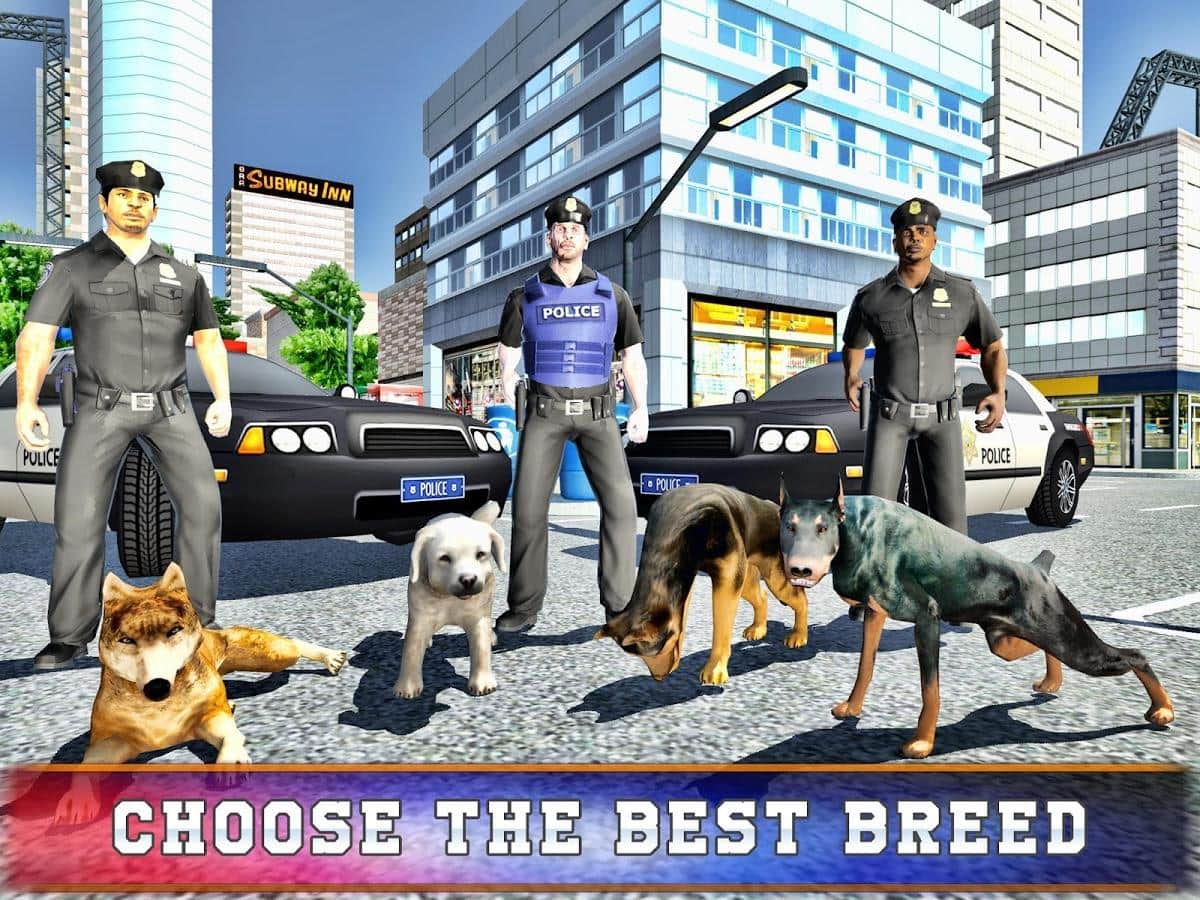 Police Dog Training Simulator – симулятор на андроид, где вы будете управлять различными полицейскими собаками. В этой игре вы возьмете под свой контроль полицейских собак и с помощью них будете выполнять разнообразные миссии по поимке преступников, поиску контрабанды, обезвреживанию взрывчатых устройство и сражаться со сбежавшими заключенными. Передвигайтесь в компании собаки по улицам города и выполняйте опасные действия. Тренируйте своих собак и улучшайте их способности. В этой игре представлены такие породы собак как: немецкая овчарка, доберман, гончая, бульдог и другие. Выполняйте все миссии и открывайте новые породы собак.