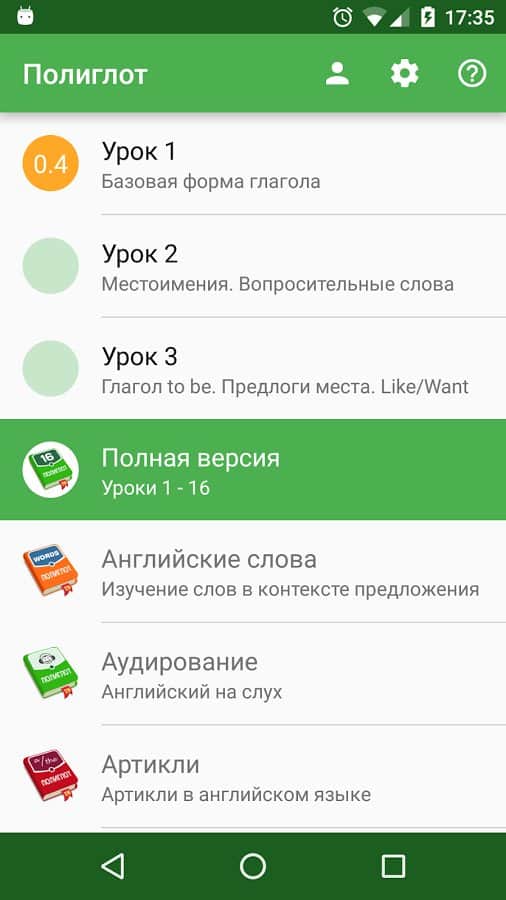 Комментарии к Полиглот Английский язык. на Android