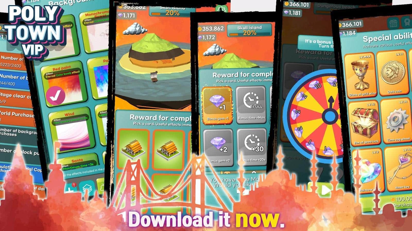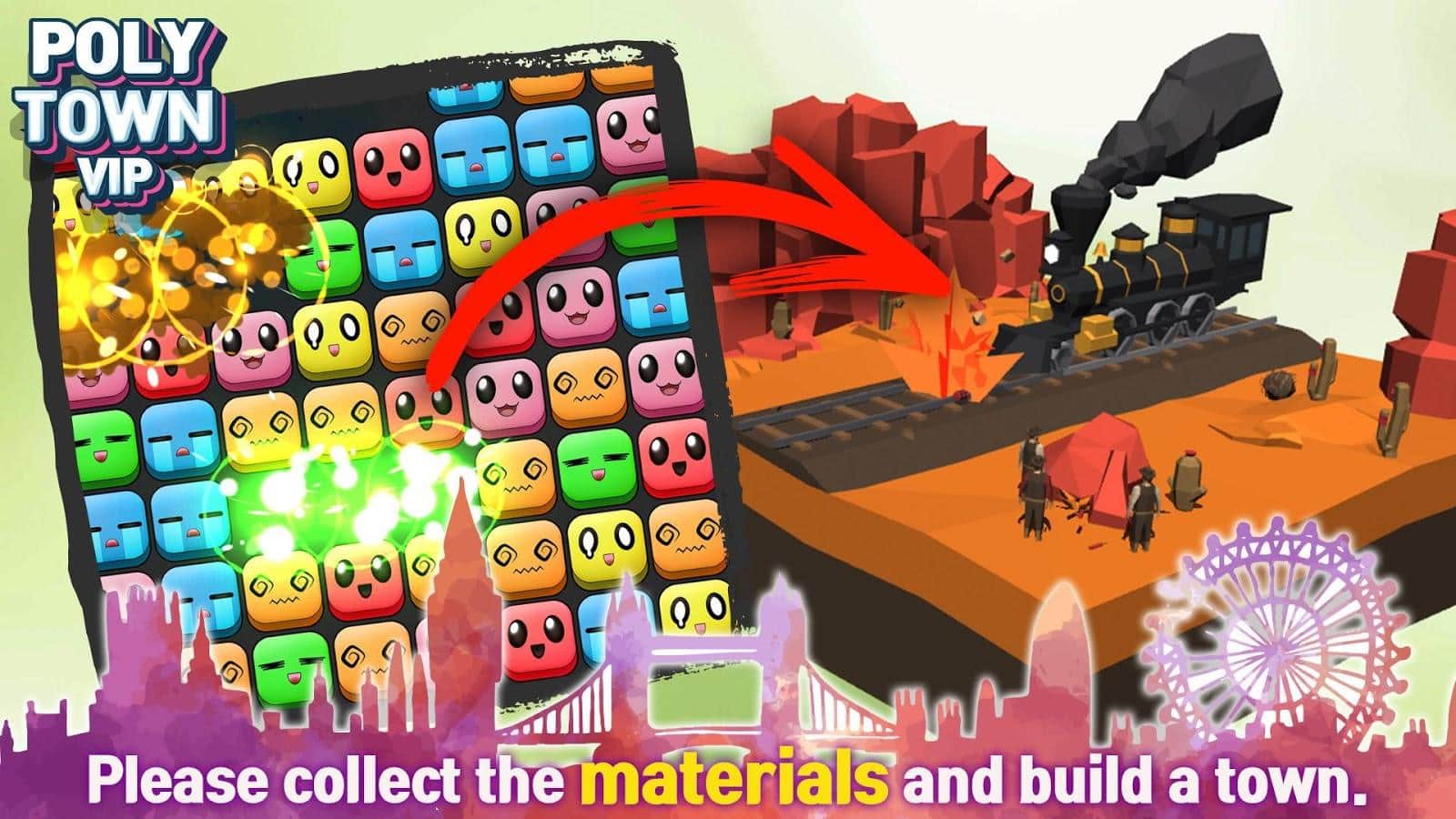 Poly Town – игра-головоломка на андроид, где вы будете строить город. В этой игре из жанра три в ряд вашей задачей будет составлять в ряды одинаковые блоки и получать новые материалы для строительства города. Тренируйте свою сообразительность и быструю реакцию и составляйте блоки. Исследуйте многочисленные и разнообразные города которые нуждаются в вашей помощи и строительстве. Постройте самый лучший и неповторимый город и делитесь им со своими друзьями. Получайте в награду за лучшие результаты новые блоки и красивые фоны. Играйте в эту игру в любое свободное время и наслаждайтесь многочисленными эффектами блоков и фонов.