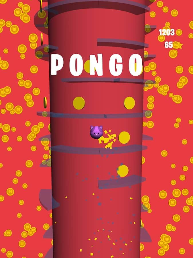 Pongo – занимательная игра где вы будете подниматься все выше по денежной башне. В этой игре вы будете управлять котом по кличке Понго и поднимать его все выше обходя все преграды на пути и собирая монетки. Простое и понятное в освоении управление где вы сможете управлять котом с помощью одного пальца. Играйте в эту игру и наслаждайтесь отличными визуальными эффектами и захватывающим игровым процессом. Собирайте по пути как можно больше монет и тратьте их на постройку своей денежной башни. Получайте улучшения и бонусы и устанавливайте свой рекорд в игре.