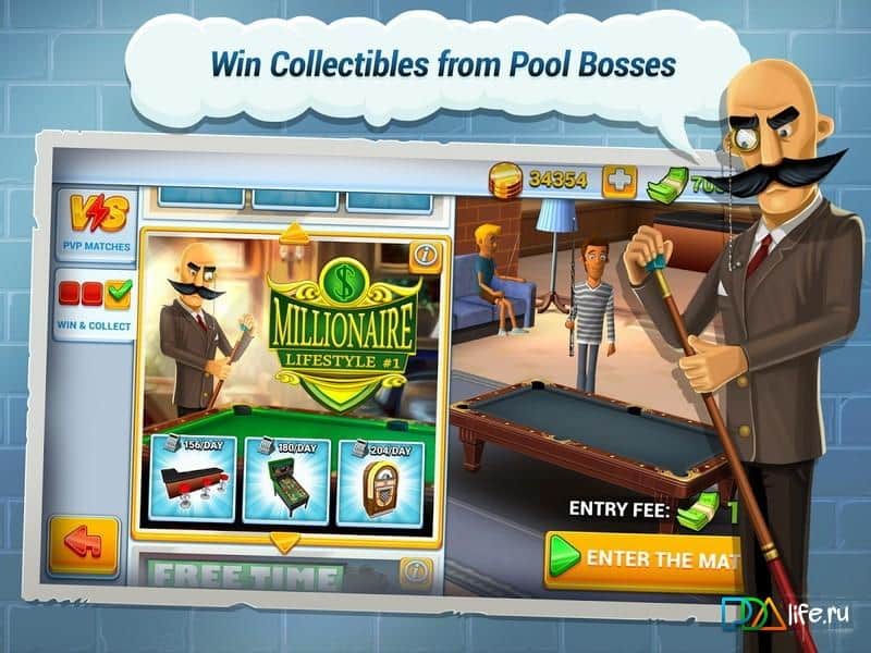 Pool Live Tour 2 – спортивная игра на андроид, в которой вы не только сможете играть в бильярд, но и создадите свой бильярдный клуб. Создайте свой бизнес и играйте в бильярд с опытными игроками, получая за это не малую награду. Сделайте свой бильярдный клуб самым популярным среди конкурентов и привлекайте как можно больше посетителей. Состязайтесь в турнирах и мастерски забивайте шары в лузы, используя для этого хитрые трюки и уловки. На заработанные деньги покупайте новое снаряжение и дополнительные столы для игры в бильярд. Знакомьтесь с новыми игроками и повышайте свой рейтинг в этой игре, добиваясь лучших результатов.