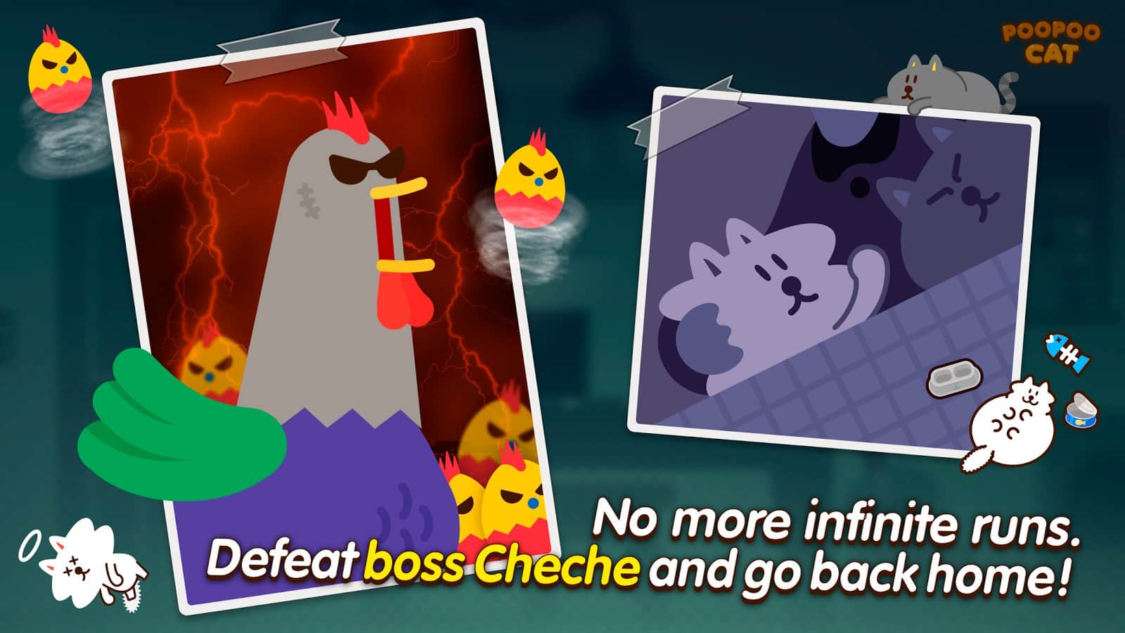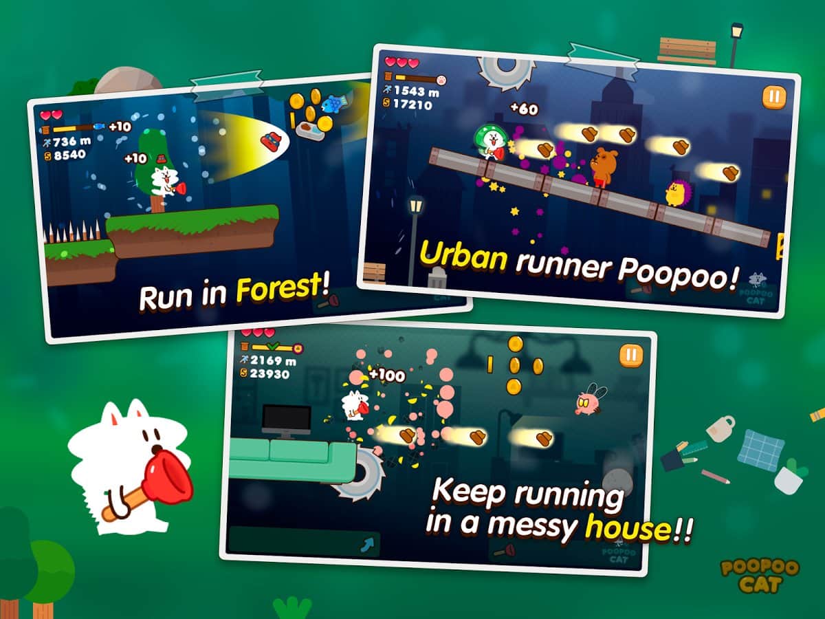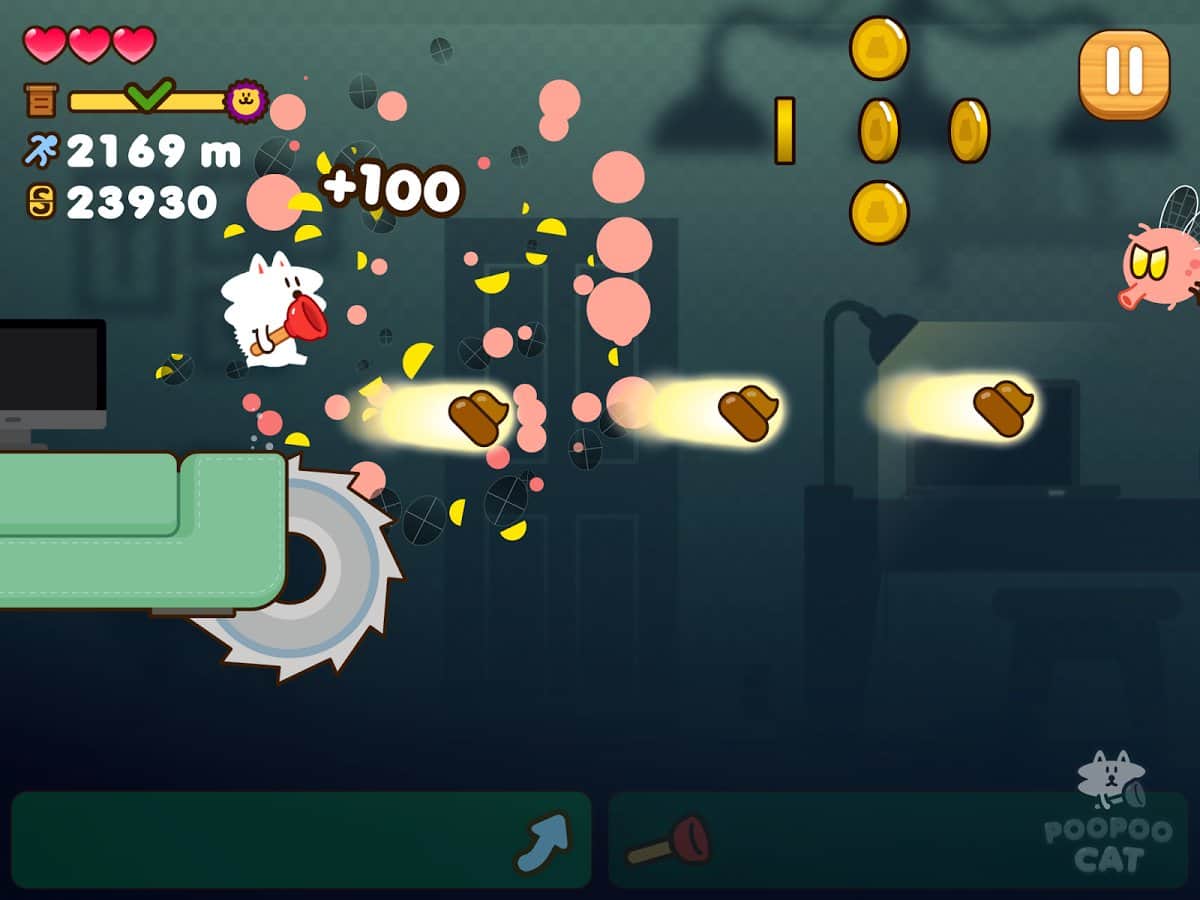 Бедный котенок потерялся и не помнит, как теперь добраться в теплую комнату своего дома. Предстоит помочь ему преодолеть все сложности, ждущие его по пути обратно в Poopoo Cat. Но вот оказывается, что это далеко не простой кот, а со временем он еще и бояться перестает. Остается только наслаждаться прогулкой и смеяться над его выходками. Чего стоит только оригинальное оружие, доступное для использования котом. Игра способна подарить незабываемые эмоции и поднять настроение в любой день. Узнай, чем будет бороться котенок и помоги ему быстро дойти домой!