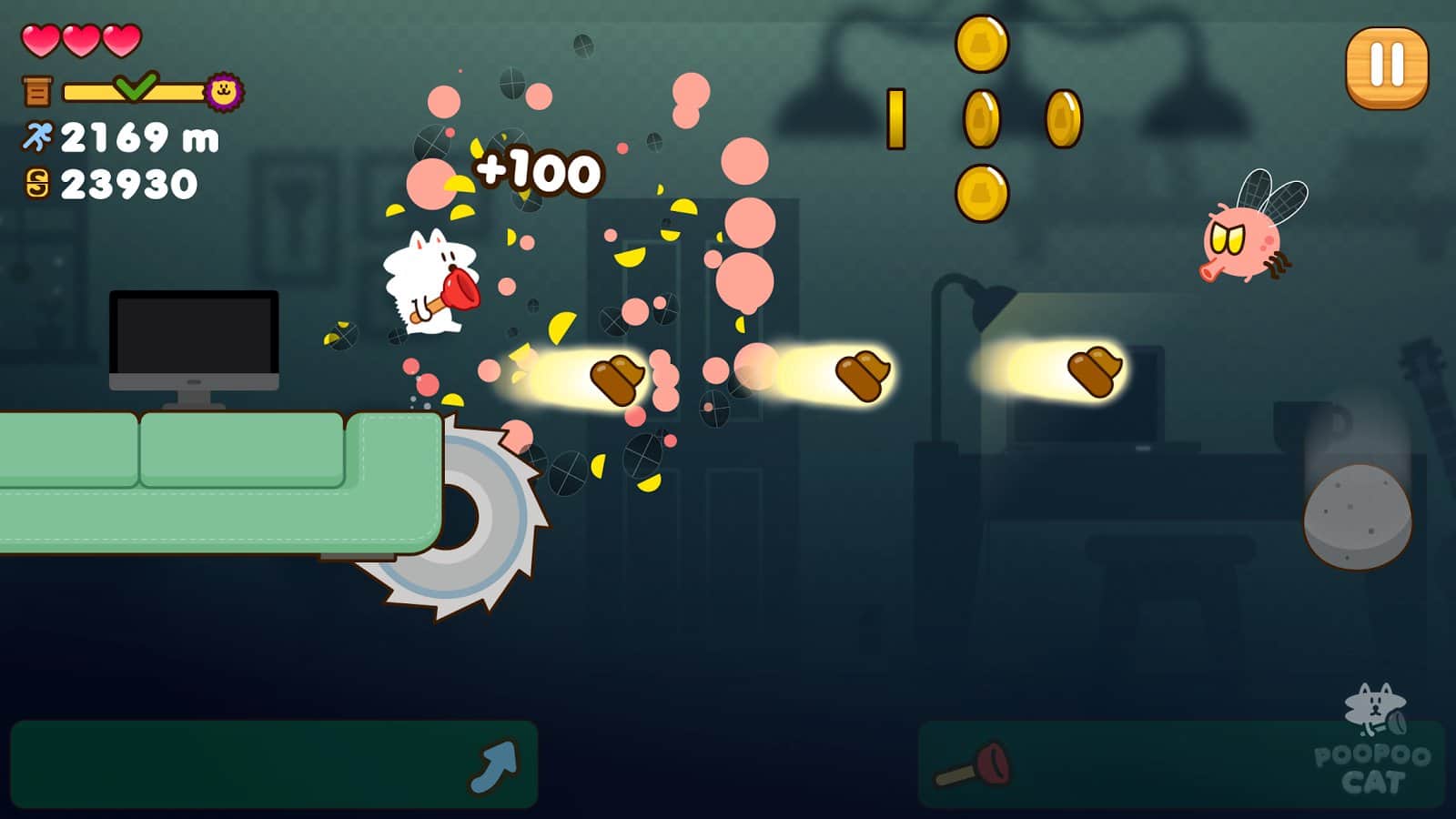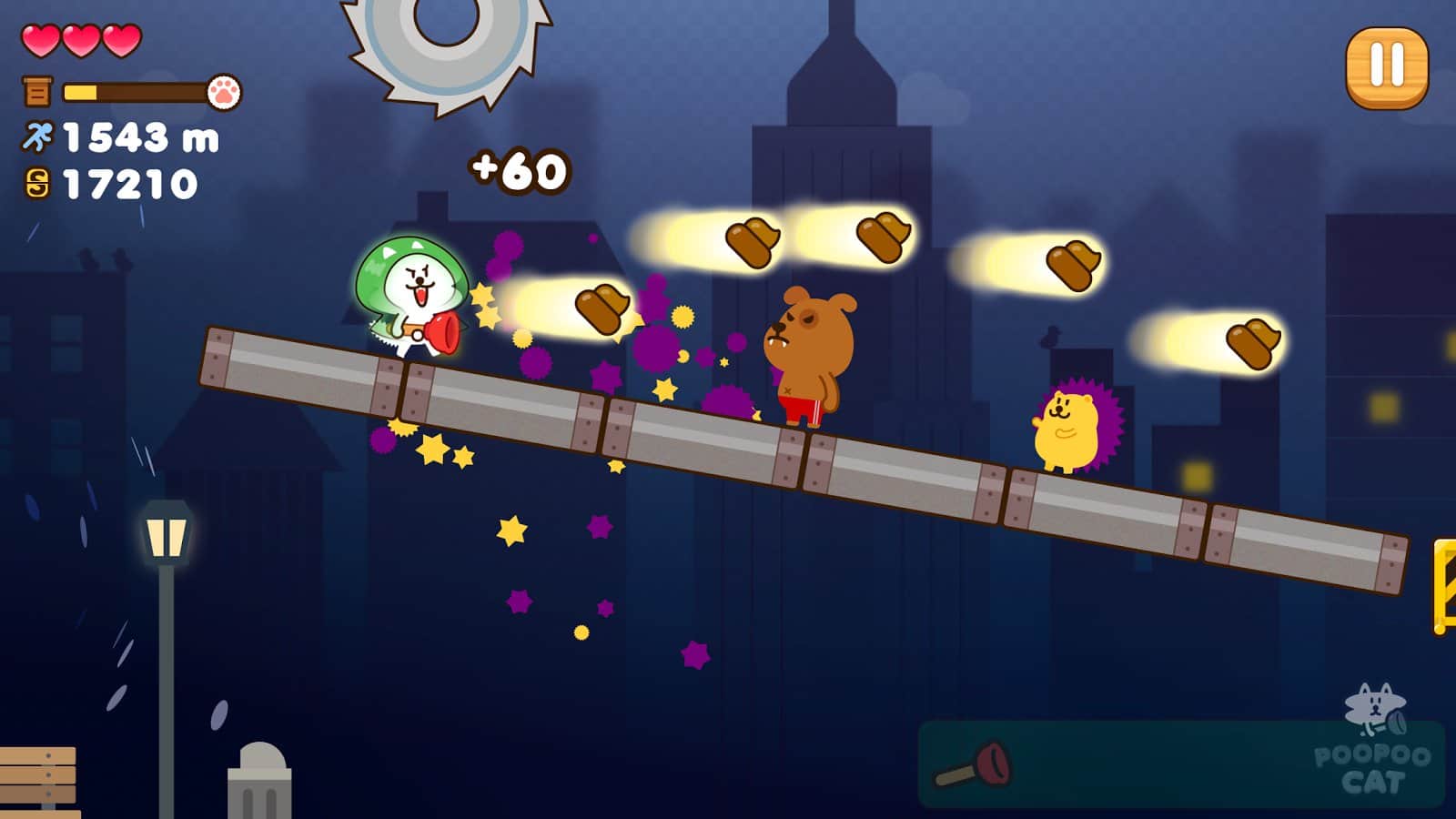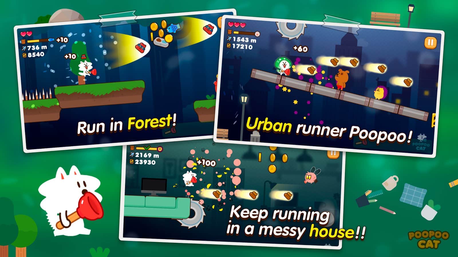 Бедный котенок потерялся и не помнит, как теперь добраться в теплую комнату своего дома. Предстоит помочь ему преодолеть все сложности, ждущие его по пути обратно в Poopoo Cat. Но вот оказывается, что это далеко не простой кот, а со временем он еще и бояться перестает. Остается только наслаждаться прогулкой и смеяться над его выходками. Чего стоит только оригинальное оружие, доступное для использования котом. Игра способна подарить незабываемые эмоции и поднять настроение в любой день. Узнай, чем будет бороться котенок и помоги ему быстро дойти домой!