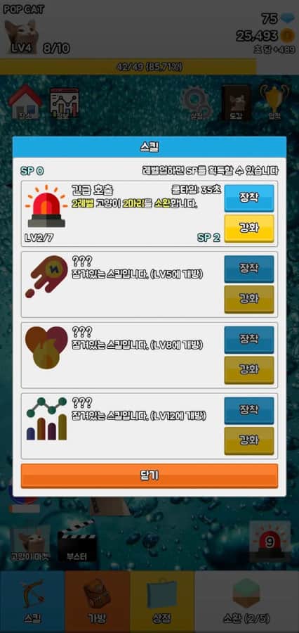 Pop Cat - Merge! - вы попали в квартиру какого-то кошатника, где обитают его коту, которые хлопают ртами. Но вот, вы разводите 2 котов и... Появляется совершенно новый кот, который хлопает ртом! Ну и как вы поняли, наша цель - разводить как можно больше крутых и новых котеек. Каждый кот будет давать деньги, за которые можно купить коробки с новыми котами. Можно прокачать разные характеристики, которые помогут нам в наборе самого большого количества очков за всю историю человечества! С каждым новым котейкой вы будете становиться всё круче и круче и зарабатывать все больше денег!