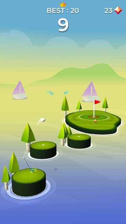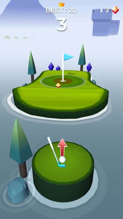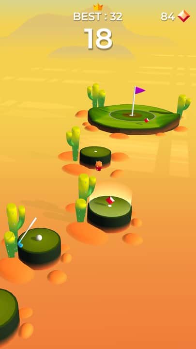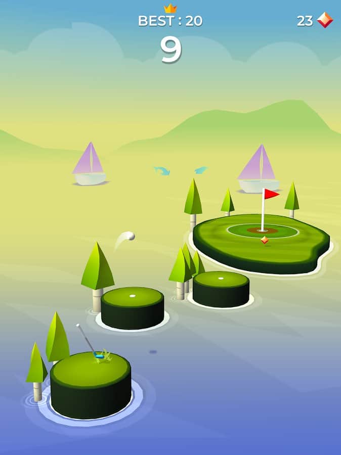 Гольф крайне популярная игра как в реальной жизни так и рамках мобильных платформ, причем каждый из разработчиков пытается найти собственную фичу, так данный проект отличается оригинальными локациями. Каждый уровень представляет из себя набор различных по высоте и размеру платформ по которым вам и предстоит перемещать мяч, а в конечном итоге добравшись до лунки загнать туда шарик. Конечно же чем меньше ударов вы совершите тем больше очков заработаете и поставите очередной рекорд.