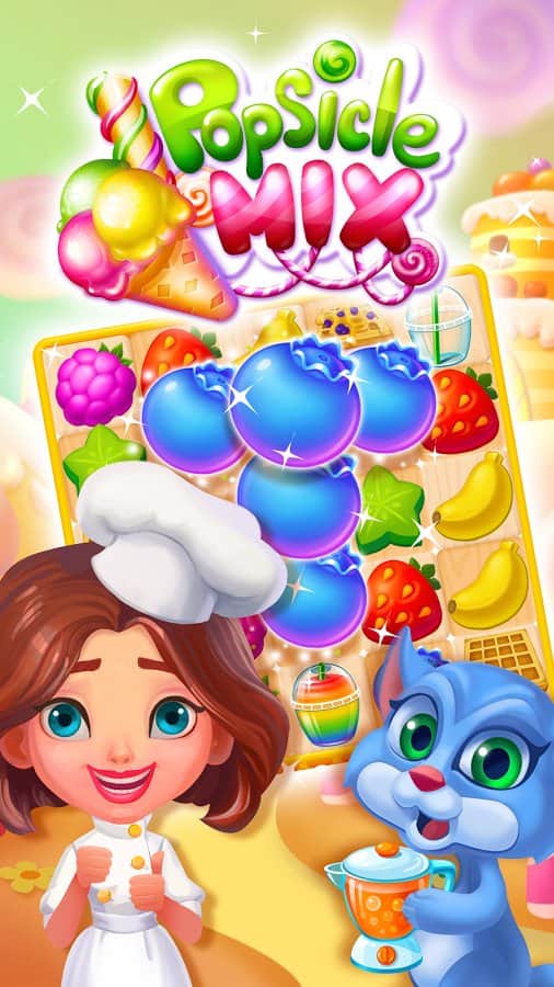 Popsicle Mix – яркая игра из жанра три в ряд на андроид, где вы будете путешествовать по сказочной стране. В этой игре вы будете помогать милой девочке Молли составлять ряды из разноцветных сладостей, мороженого и других объектов. Помогайте милым животным попавшим в плен освободиться для того чтобы они продолжили с вами это приключение и помогали вам бороться с темными силами. Старайтесь составить как можно длиннее ряды из фруктов и запустить в действие цепную реакцию взрывов. Играйте со своими друзьями и добивайтесь отличных результатов в этой игре.