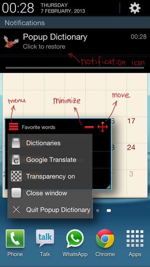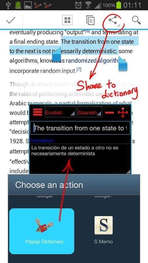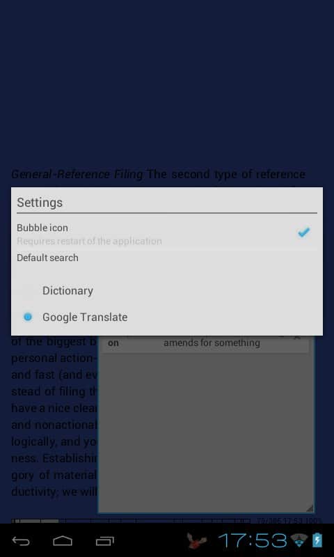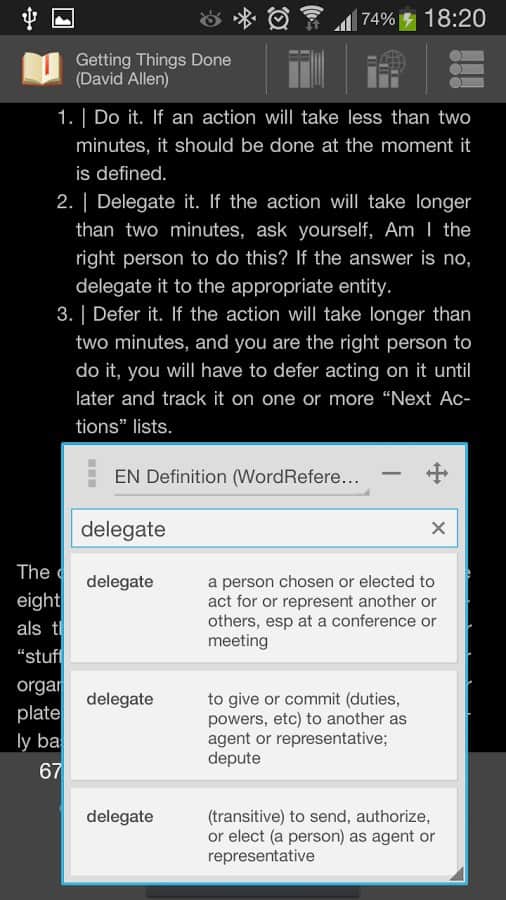 В современном мире без качественного переводчика сложно, поэтому вы наверняка уже обзавелись любимым сервисом для переводов. С Popup Dictionary работу с ним можно сделать еще удобнее, ведь приложение открывает словарь в небольшом плавающем окошке с прозрачным фоном, которое оставляет читаемым максимально большое количество информации на экране. Работает с Google Translate или другими онлайновыми сервисами для перевода.
