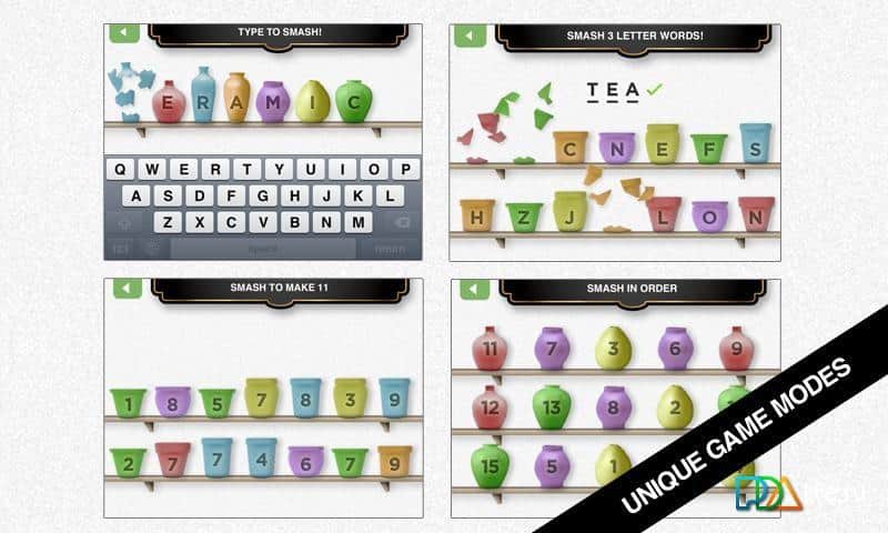 Pot Smash: Type & Match - игра на андроид, в которой вам предстоит разбивать кувшины и вазы. Это игра проверит вашу быструю реакцию и логическое мышление, ведь в ней вам необходимо разбивать вазы в зависимости от выбранного режима, а таких 8, разбивайте по цифрам на кувшинах, по буквам и словам или просто в быстром режиме, все подряд на время. Затягивающий геймплей и простое управление, а также звуки бьющейся посуды понравятся любителям пошалить.