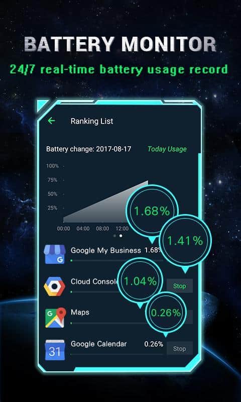 Power Battery - С каждым днем ваш смартфон потребляет все больше батареи? Это происходит из за того, что запускается множество сторонних служб, они скрыты и при этом не всегда нужны, однако очень сильно расходуют нашу батарею. Данное приложение, поможет вам справится с этой проблемой рас и навсегда. Для него не нужны root права, все что вам нужно это установить его, запустить и одним нажатием оптимизировать работу вашего смартфона. Так же, вы найдете здесь множество разной информации о вашем устройстве.