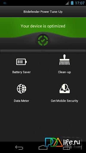 Power Tune-Up для android - прекрасный способо оптимизировать работу вашего телефона. Приложение включает 3 основных элемента: Battery Saver, Clean-up и Data Meter.