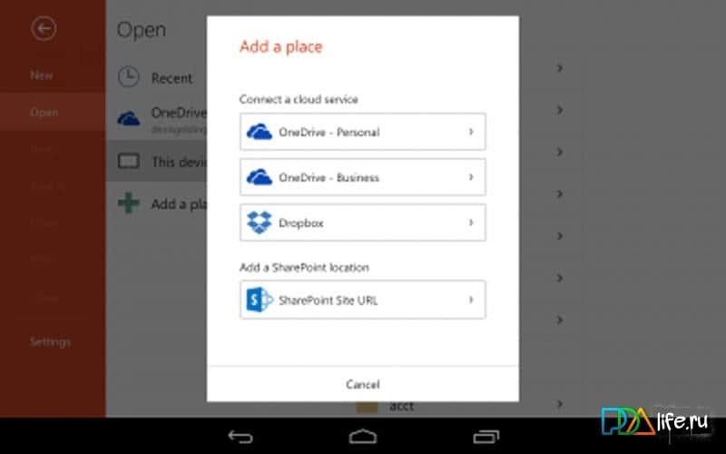 - Просматривайте почтовые вложения и работайте со всеми своими презентациям PowerPoint из OneDrive, Dropbox, OneDrive для бизнеса или SharePoint.