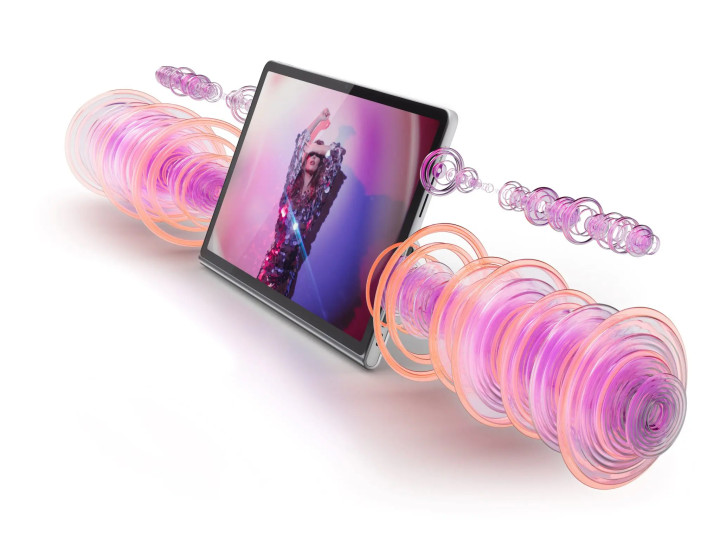 Главным украшением новинки стала аудиосистема, включающая 8 динамиков, настроенных JBL и дополненная сабвуфером. Lenovo утверждает, что планшет может выводить звук до 26 Вт. Также планшет предлагает необычную дополнительную опцию: он может воспроизводить звук с других подключенных устройств, например, вашего смартфона или игровой консоли. То есть, Lenovo Tab Plus можно использовать в качестве беспроводной Bluetooth-колонки. Кроме того, в наличии аудиопорт.