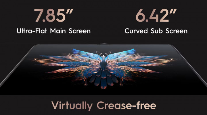 Диагональ внешнего экрана 6,42 дюйма, используется матрица LTPO AMOLED с разрешением Full HD (1080×2550) и частотой обновления до 120 Гц. Внутренний складной дисплей выполнен по той же технологии, но больше по диагонали 7,85 дюйма, а его разрешение выросло до 2K+ (2000×2296). Пиковая яркость обеих панелей 1100 нит.