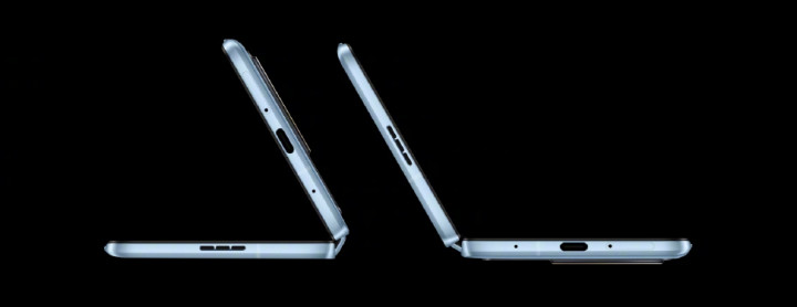 Новинка представлена в черном, синем и сером цветах.Крышка покрыта кожей, что подчеркивает премиальный статус устройства. Крепкий шарнир позволяет раскрыть смартфон полностью или закрепить его в положении от 60 до 120 градусов. По заявлениям производителя, он выдержит до 300 000 складываний. Сам шарнир плоский, никаких “капель” или зазоров здесь нет. На корпусе предусмотрен механический переключатель режима звука.