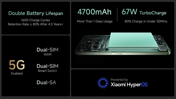 Аккумулятор на 4700 мАч поддерживает зарядку мощностью 67 Вт.