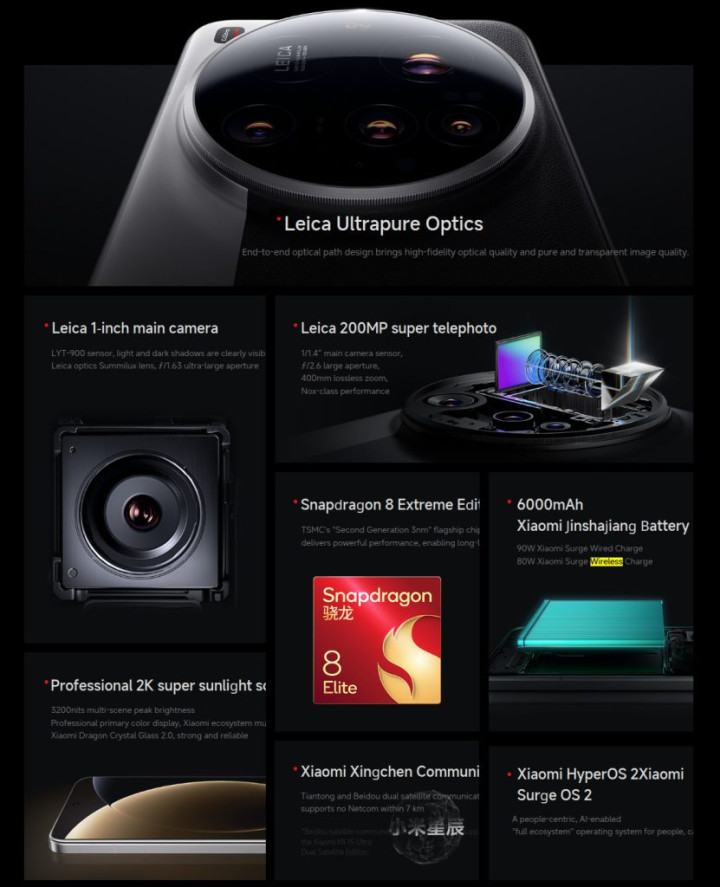 Высокую производительность новинке гарантирует топовый Snapdragon 8 Elite и 12 или 16 ГБ оперативной памяти (LPDDR5X). Емкость внутреннего хранилища может быть равна 256 ГБ, 512 ГБ или 1 ТБ (UFS 4.1). Оболочка HyperOS 2.0 базируется на Android 15.