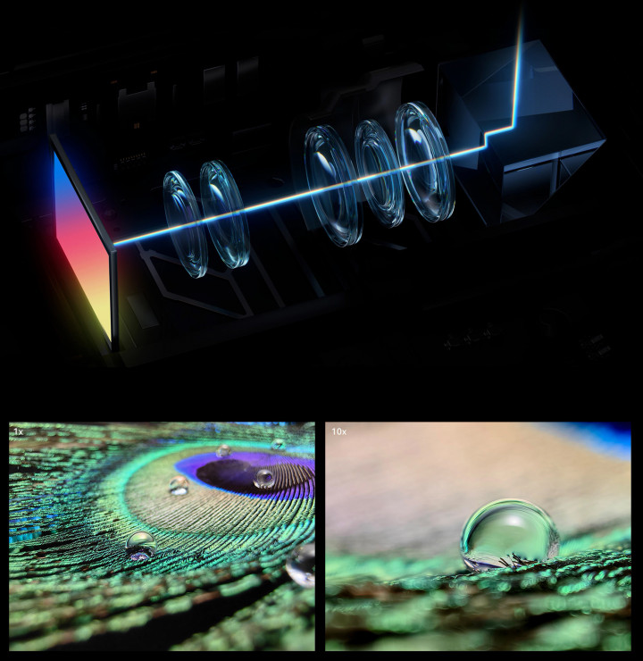 Основная камера вновь трехсекционная, однако ведущий модуль получил оптическую стабилизациею, разрешение перископа выросло до 64 Мп он предлагает оптический зум до 3,5х и цифровой до 200х, дополнен оптической стабилизацией. Производитель акцентирует внимание на фирменной разработке XMAGE, обещая что с ней пользователь получит идеально скоординированную работу сенсоров и программного обеспечения.