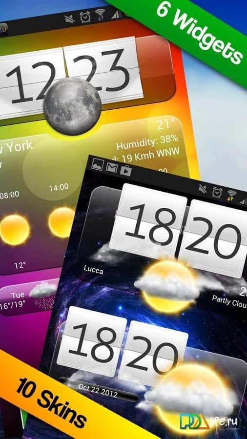 Premium Widgets & Weather - очень красочный виджет погоды и часов для андроид от разработчика Pizero Design. Сменные дополнительные оболочки, красивая анимация, возможность перехода в полноэкранный режим станут прекрасным дополнением вашего смартфона или планшета.