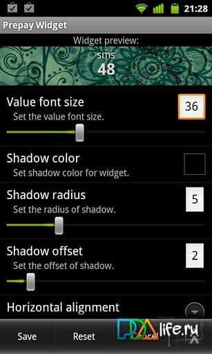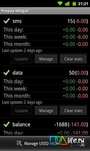 Баланс Widget Pro (Prepay Widget) - всегда актуальная информация о состоянии баланса прямо на экране вашего смартфона. Для этого приложение инициирует USSD запрос и виджет баланса отображает полученную информацию. Настраивать можно практически все: условия для отправки запроса (автоматически через определенный интервал, после звонка или смс); общий вид данных (отрицательные значения, количество знаков до и после разделителя, пересчет в удобные единицы измерения) и, собственно, виджет (выбор цвета, тени, размер шрифта и расположение текста на экране) Также можно настроить реакцию виджета на прикосновение: либо отправка USSD запроса, либо вывод статистики.