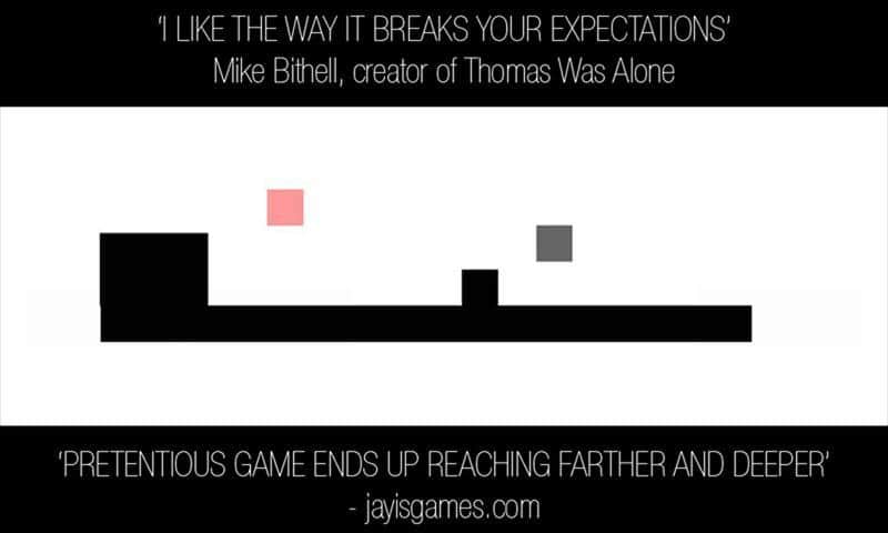 Pretentious Game - игра на аndroid, в которой вам предстоит любыми путями добраться до розового квадратика. По началу все кажется просто но с каждым уровнем сложность будет только увеличиваться. Но вам на помощь придут скрытые пути, когда будет казаться что выхода нету. Проверти свою внимательность и ловкость в этой инновационной игре головоломке.