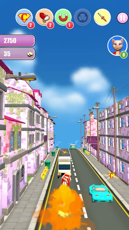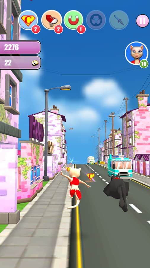 Princess Cat Lea Run – раннер на андроид, где вы будете помогать милой кошке убегать от огромного бульдога. Дразните собаку и со всех ног убегайте от нее, перемещаясь обходя все препятствия на оживленных улицах города. Бегайте, прыгайте и катайтесь на гоночном автомобиле пытаясь убежать от преследования. Обходите все препятствия и в виде автобусов, машин и других транспортных средств, при этом не забывая собирать золотые монетки и различные бонусы, такие как: возможность летать на ракете и ездить на гоночном автомобиле. Откройте всех забавных персонажей игры и путешествуйте по различным уровням.