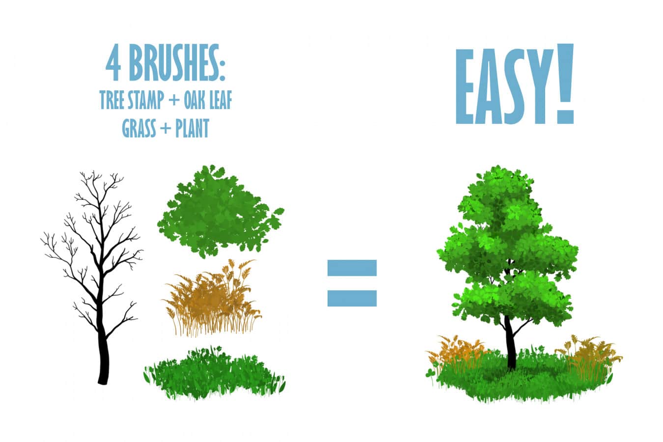 Procreate Brushes - Foliage - Создайте на холсте изображение любого куста, дерева, листьев и травы, используя при этом только этот набор со специальными текстурами! Для реализации реалистичной работы вам потребуется подобрать не только определенную кисть из набора, но и правдоподобные оттенки тех вещей, которые вы хотите отобразить. Детально прорисовывайте любые недочеты, подчеркивайте те места, где это необходимо, а также научитесь рисовать не только природу, но и что-то комбинированное с ней на одном плане полного рисунка.