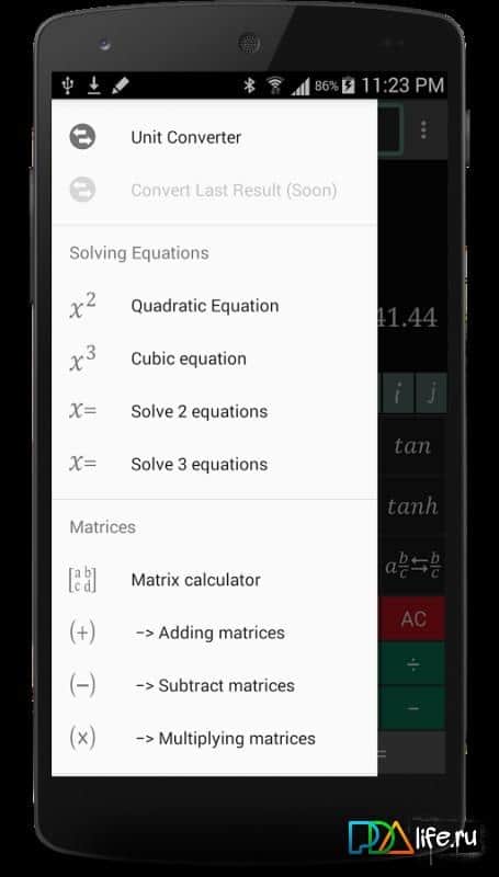 Prof Calculator - Великолепный научный калькулятор, который вобрал в себя множество различных функций, и создан что бы решать сложные задачи и формулы. Данное приложение справится практически с любой задачей, однако его основная функция это калькулятор матриц, и решение сложных уравнений. Он не очень подходят для того что бы использовать его как обычный калькулятор, однако если вы студент и связаны с данными вопросами, то вам он однозначно пригодится.