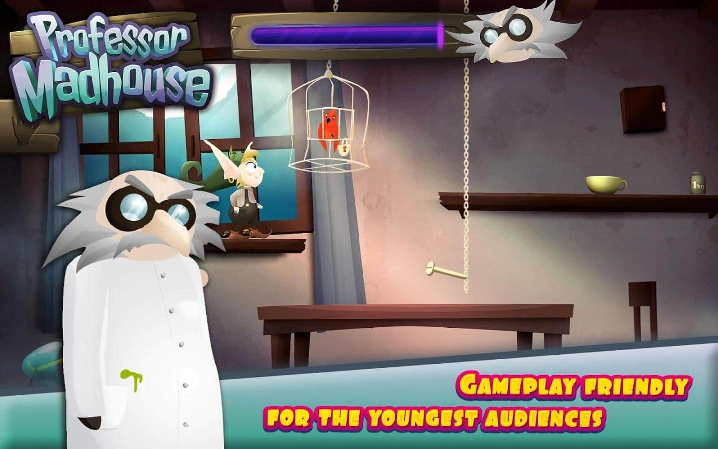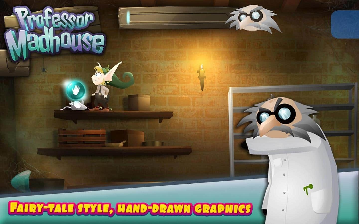 Professor Madhouse - красочный приключенческий квест в котором вам предстоит в роли забавного эльфа отправиться в опасное путешествие по владениям профессора Madhouse и по пути освобождать заточенных животных, при этом пробираясь по комнатам ваша задача решать головоломки различной механики и конечно же соблюдать тишину, а иначе злобный профессор сделает и вас подопытным кроликом. В игре отличная графика, захватывающий геймплей, разнообразные задачи и забавные персонажи.
