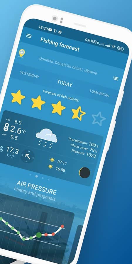 Fishing Forecast - ваш незаменимый помощник в мире рыболовства! Научитеся предугадывать рыбьи настроения благодаря этому инновационному приложению. Оно основывается на данных атмосферного давления, что позволяет точно предсказывать клев рыбы.Стабильное атмосферное давление - залог успешного улова. А наше приложение поможет вам определить идеальное время для рыбалки, показывая наилучшие моменты активности рыбы. Это как ваш личный барометр, который дает вам преимущество над другими рыбаками.