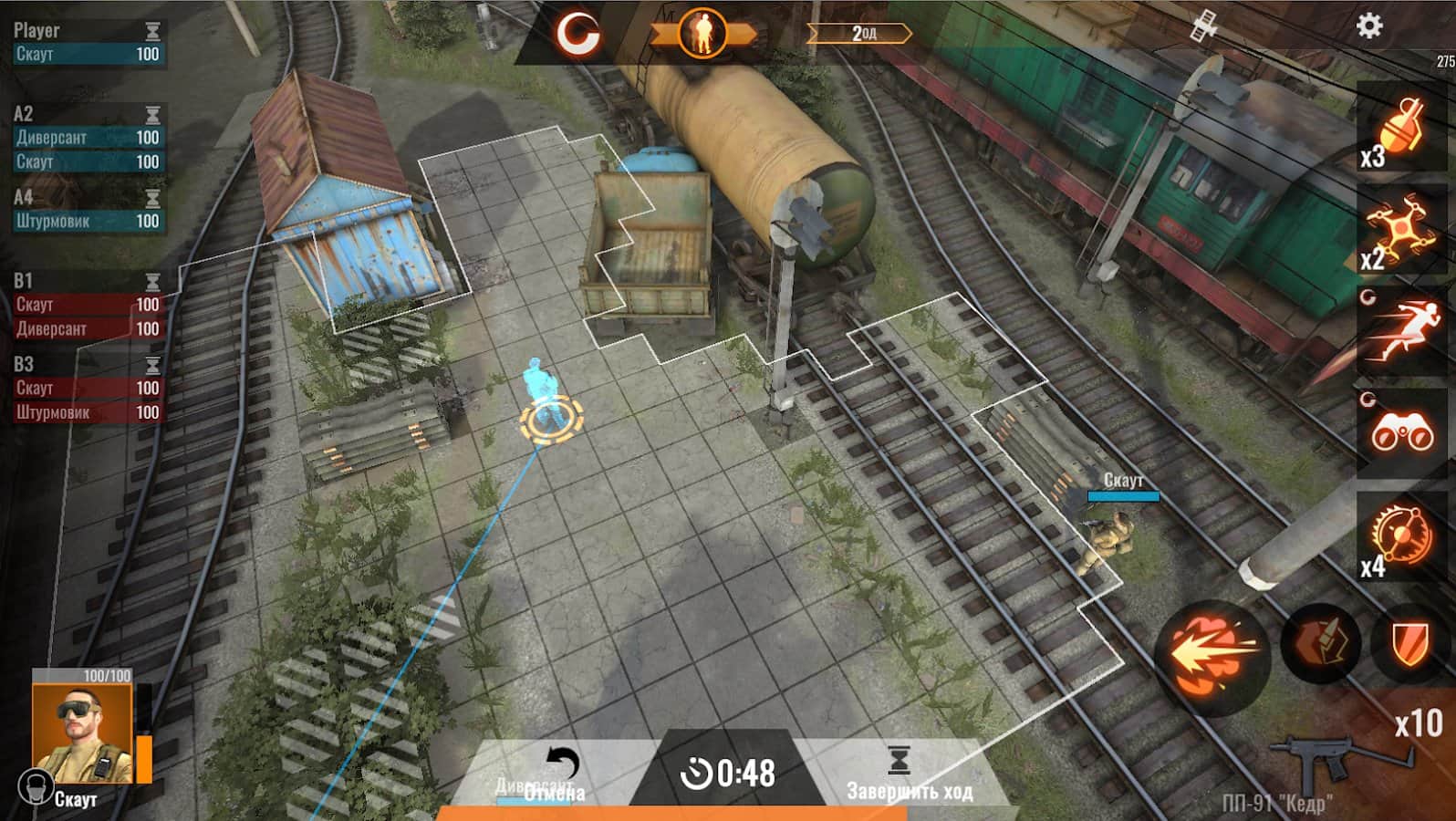 В принципе проект интересный и обладает возможностью стать хорошей игрой для сотен тысяч игроков, но пока-что разработчики что-то не спешат и об обновлениях почти ничего не говорят. Сама суть игры заключается в том чтобы перебить всех врагов на поле боя и аномалиями тут никакими не пахнет, есть два режима, воевать с двумя своими бойцами или с одним. Так как игра известна только разработчику и его друзьям, онлайн игры в основном 2,5 человека, но чат всё таки живой. Кто-то как обычно пишет про бытовуху, другой ее обсуждает с ним, а третий просто тот кому ничего не понятно и хочет узнать. Собственно зачем я писал всё что было выше? Для того что бы понять насколько интересно играть в эту игру 4 на 4 с ботами! Оаоаоа как же интересно то! Опа на клеточку шагну, а тут гранату кину, ой меня убили. Примерно так и проходят всё бои. В ней жутко не хватает онлайна, иногда закинет к каком-нибудь олду игры, которого наверно сам разраб заставил играть, с топовыми пушками, прокаченным опером и убивает тебя за хода 3. О кстати! Получение оружия здесь тоже интересный процесс! Открывай кейсы за валюту с боёв и заданий и получай детали оружия, которые во первых не взаимозаменяемы, а во вторых распределяются на редкость. Тоесть чем деталь встречается реже, тем она дороже, и причём настолько дороже, что придётся задротить неделями, а я напомню онлайна почти нет, а если и есть новичков среди него капец как мало. Я не знаю способов провести в сырой игре недели 4 ради прокачки хотя-бы одного перса, если знаете не пишите до того момента пока разраб или разрабы не возьмутся за игру, а не будут своих друзей водить для поддержания онлайна, по крайней мере всё выглядит именно так. Каждый день каждого числа, я вижу в чате одних и тех же людей пишущих что угодно. Как я уже говорил ранее, проект то интересный, но авторы у него не очень. В будущем может и доведут до ума, но если вспоминать подобные проекты по сталкеру на телефон, коих не сосчитать и их судьбу, конечно тут страйк от хохлов не прилетит, но забросить могут. Моё мнение не отрицательное, но и не положительное, интересно продумано, но не интересно без людей.