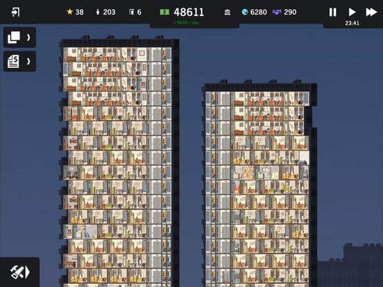 Project Highrise – отличная стратегия для IOS, где вы будете выступать в роли архитектора и застройщика. Вашей главной задачей будет построить огромный небоскреб, который будет пользоваться спросом и обретет всемирную славу. Начните свое строительство, а также подыскивайте съемщиков и арендаторов. В этой игре вы сможете строить разнообразные здания это, могут быть как бизнес центры, так и пентхаусы и элитное жилье для звезд и богачей. Стройте столько этажей, сколько захотите и заселяйте туда жителей и большие компании. Добейтесь успеха в этой игре и докажите всем что вы лучший строитель.