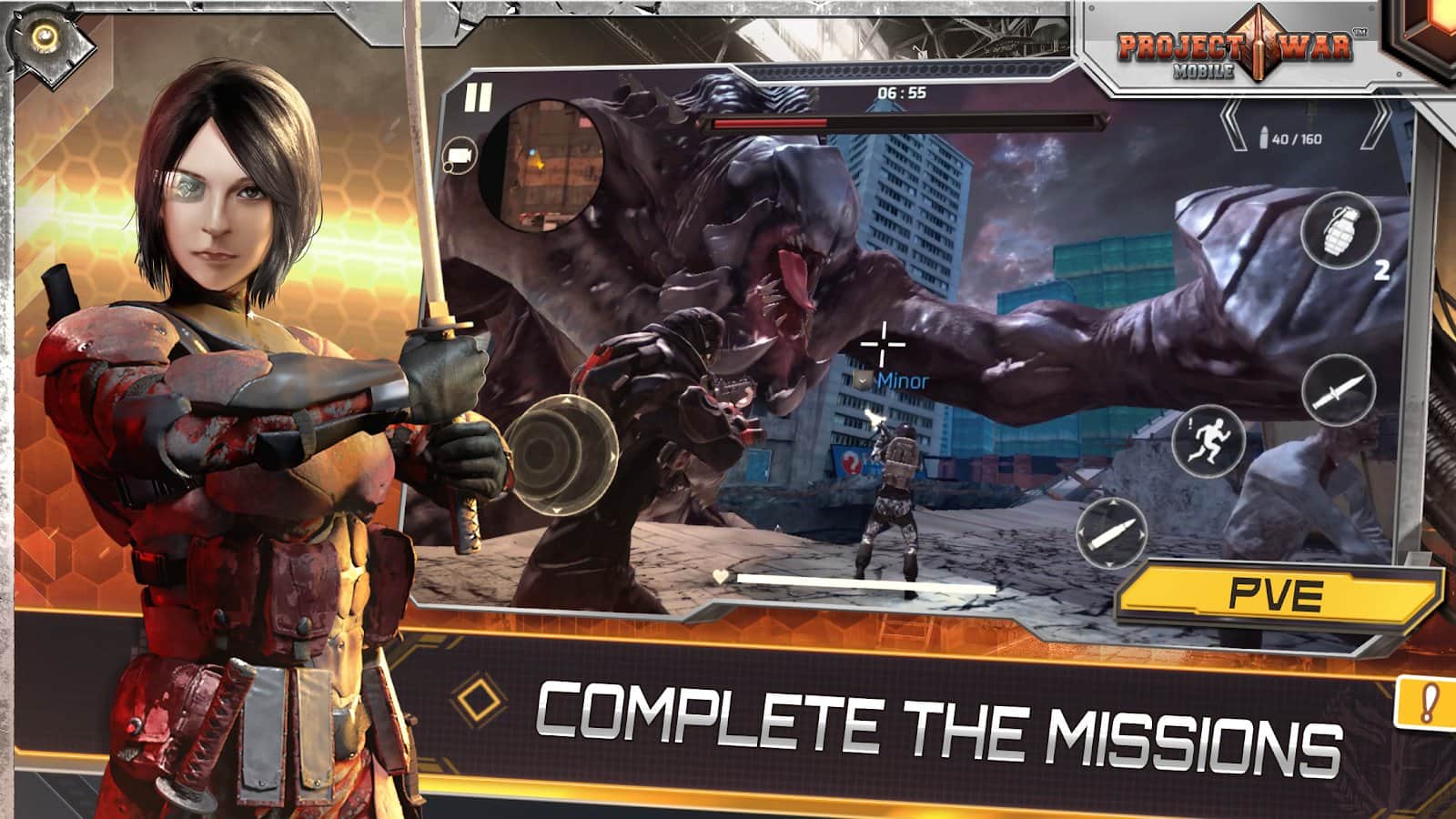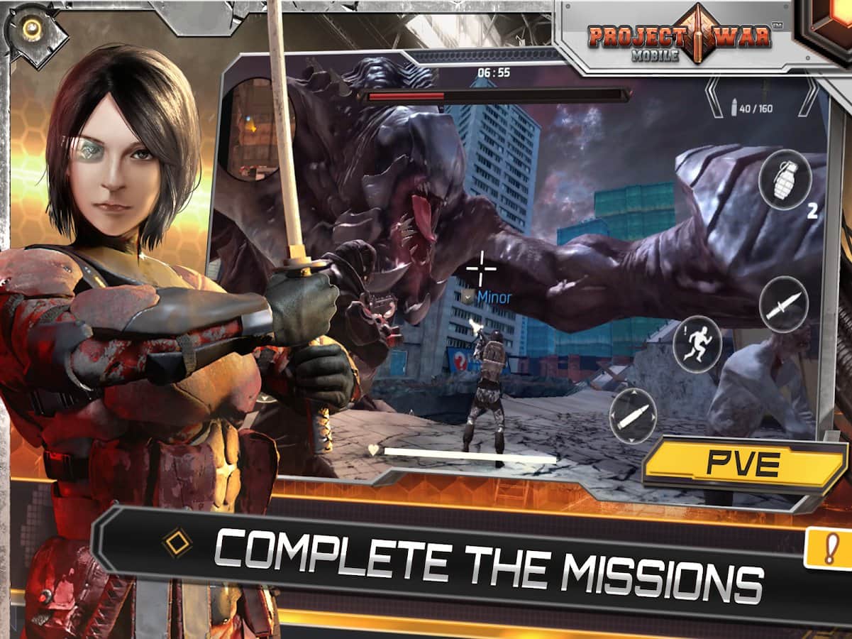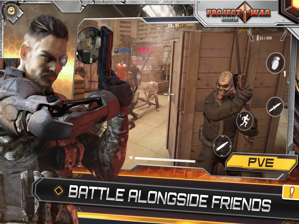 Project War Mobile (PWM) - это экшен-игра нового поколения на Android. В режиме истории вам предстоит играть в роли солдата Седьмого святилища, разгадывая тайну нежити и наблюдать за тем, как разворачивается действие и драма. В режиме мультиплеера вы сможете сражать с онлайн-игроками по всему миру, поднимаясь по рейтингу, чтобы стать номером один. Улучшайте свое оружие и снаряжение, а также поднимайте уровень своего персонажа. В сюжетном режиме вы можете уничтожать боссов вместе со своими друзьями. Создайте свой собственный клан и получайте уникальные награды за прохождение уровней.
