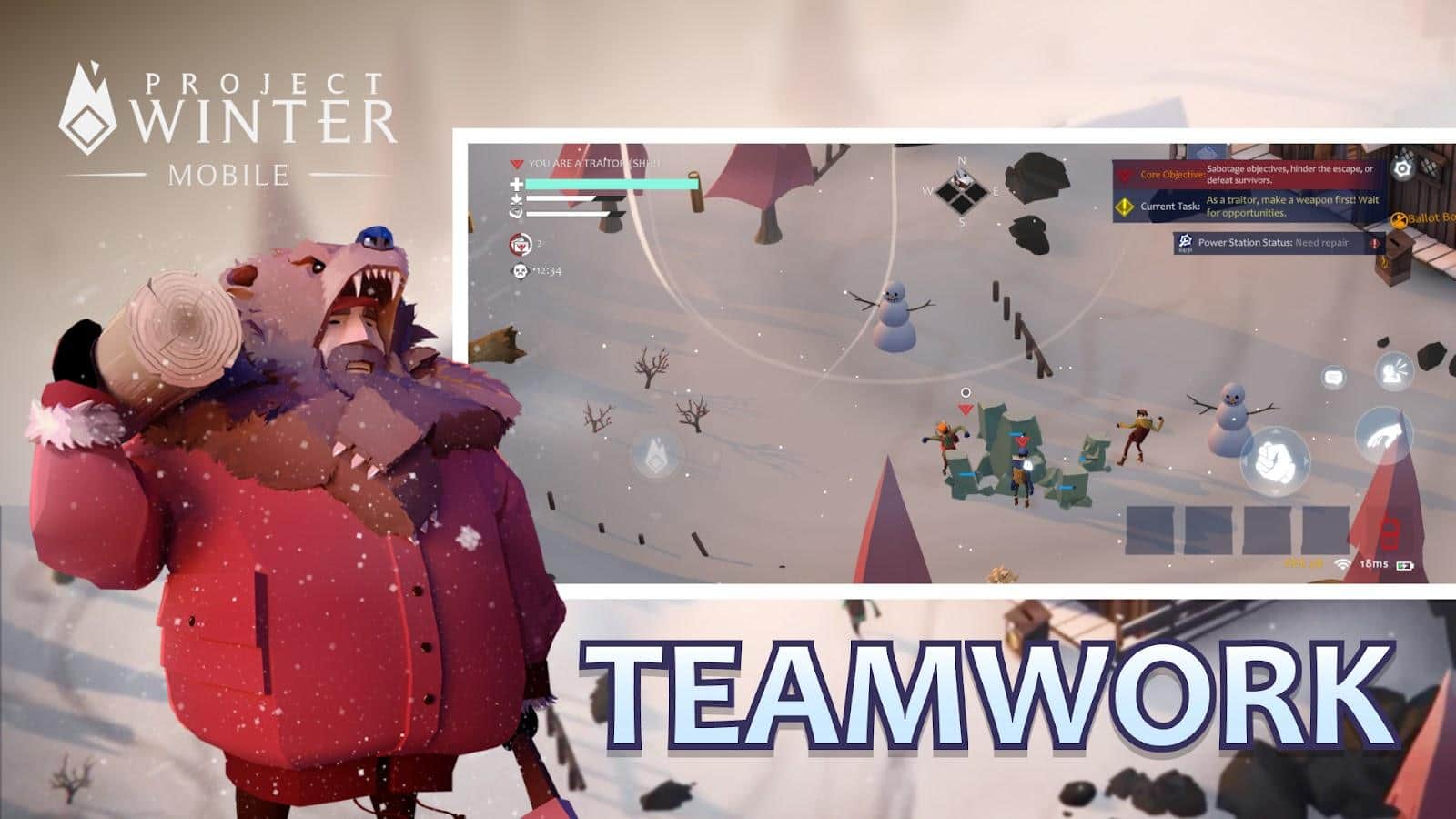 Project Winter Mobile - вы, вместе с другими товарищами по команде, отправились на засекреченное задание в горы, но так как пошла сильная метель, с этого момента начинается настоящее выживание и сражение со смертью! Ищите и добывайте необходимые ресурсы, прячьтесь от возможных угроз в укромных местах, делитесь с другими 6 товарищами миссиями на каждый день, встречайте неожиданные места и не позволяйте предателям обмануть вас, а затем легко воспользоваться полученной информацией. Будьте осторожны и хитры, доверять стоит только себе.