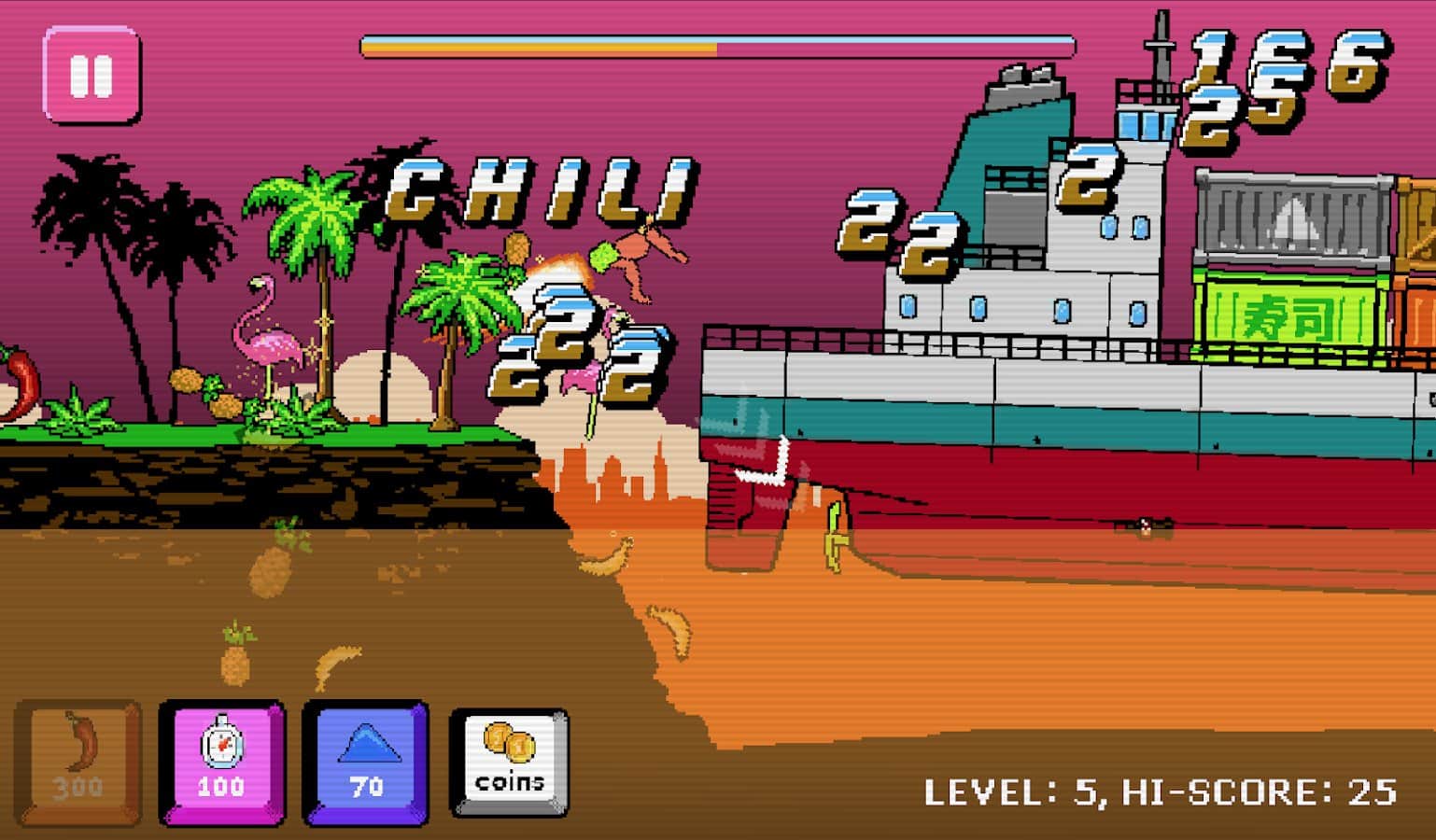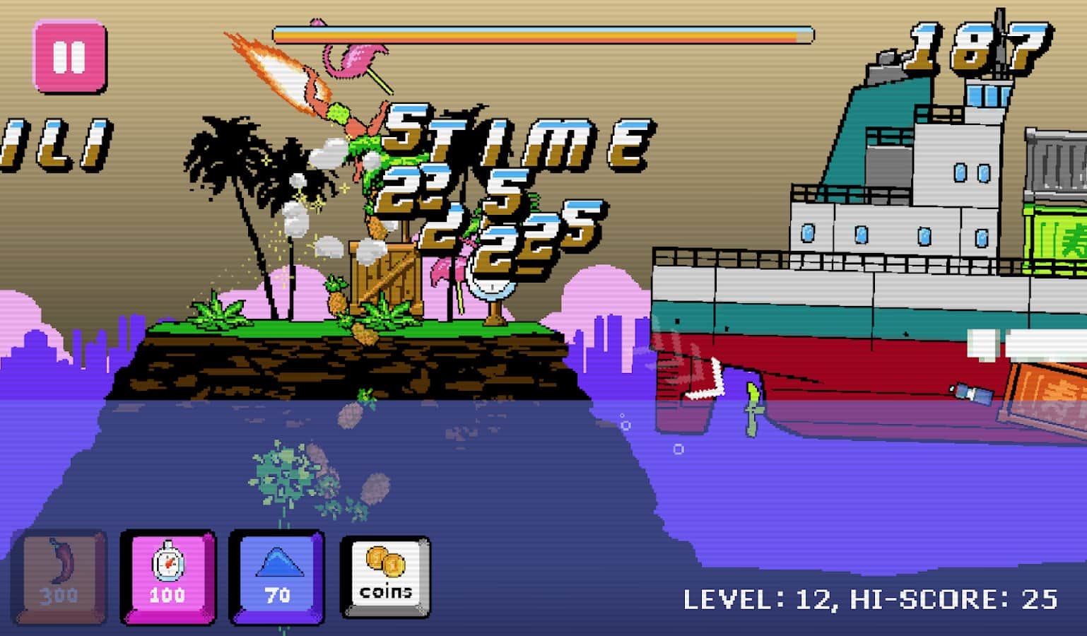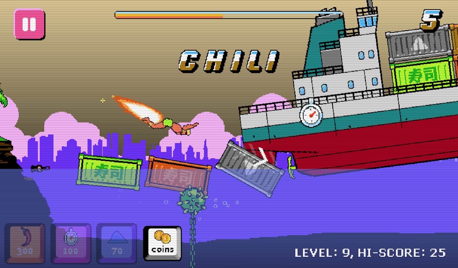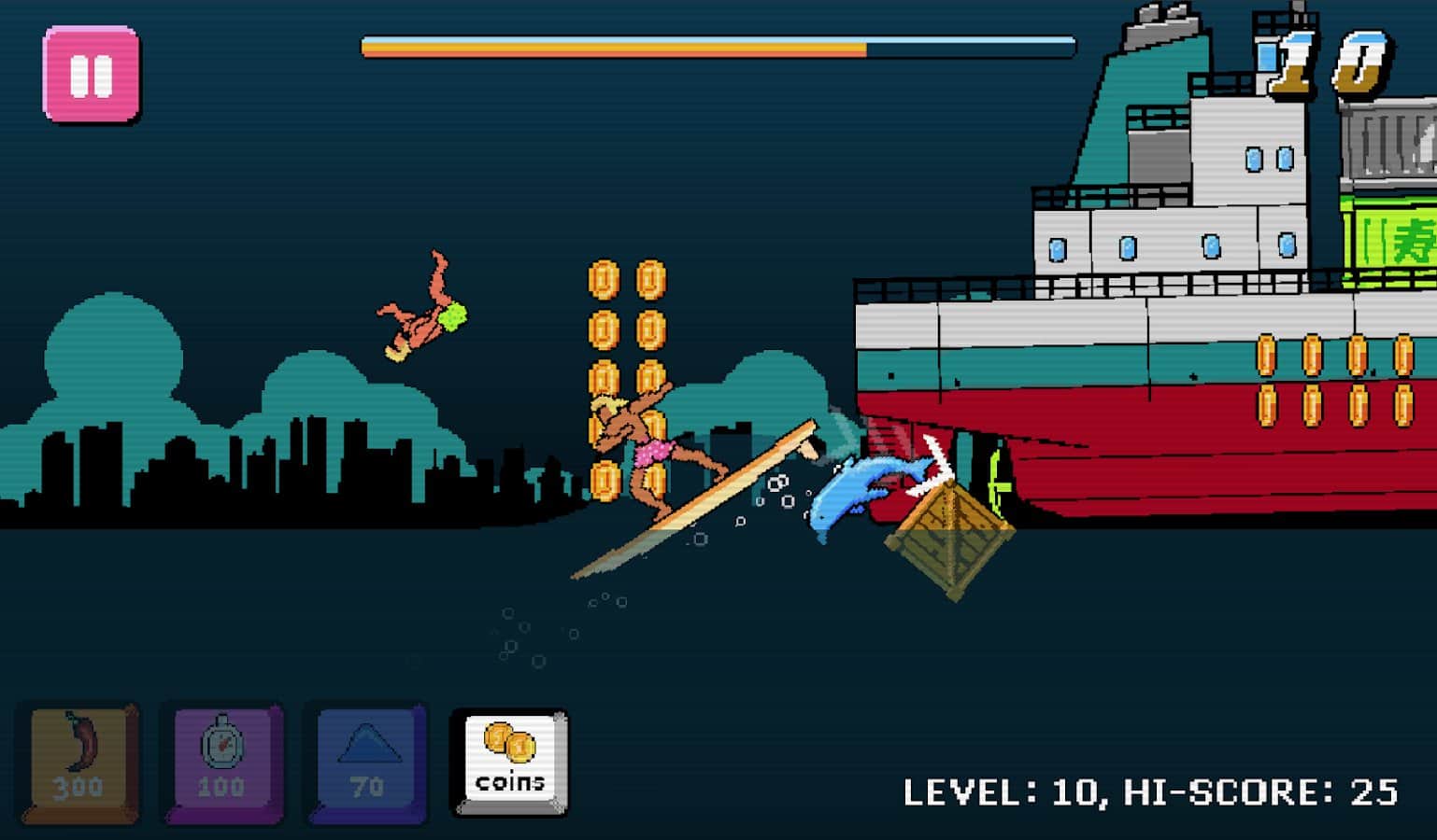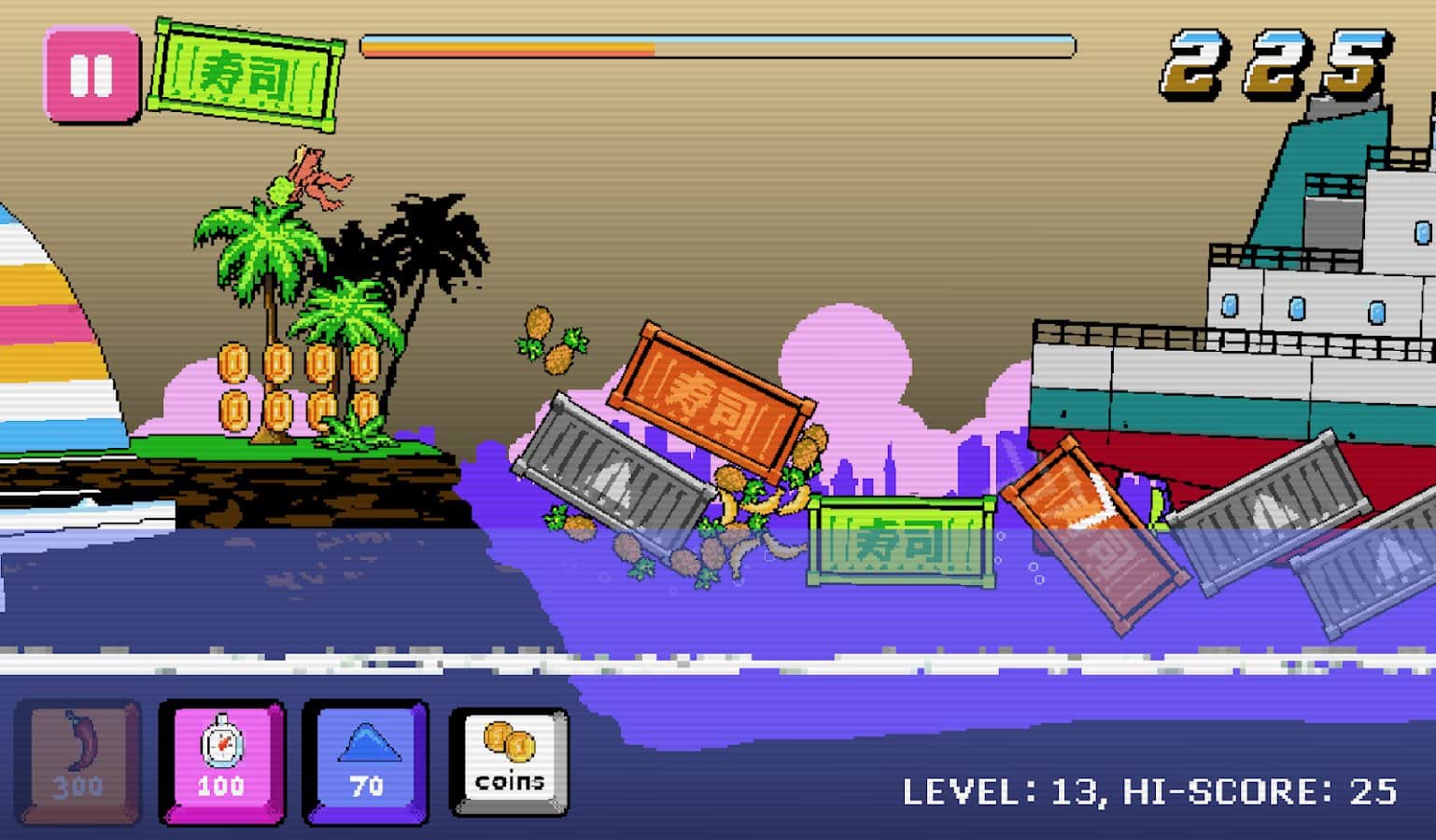 Prop Crush - красочная пиксельная аркада в которой ваша задача помочь главному герою добраться до лайнера, но при этом необходимо не только избегать различных препятствий, но и держаться на поверхности воды. Для достижения цели вы сможете использовать не только собственные силы, но и различные предметы раскиданные на поверхности океана. По мере прохождения конечно же вам будут попадаться и дополнительные бонусы, перки и различный лут.